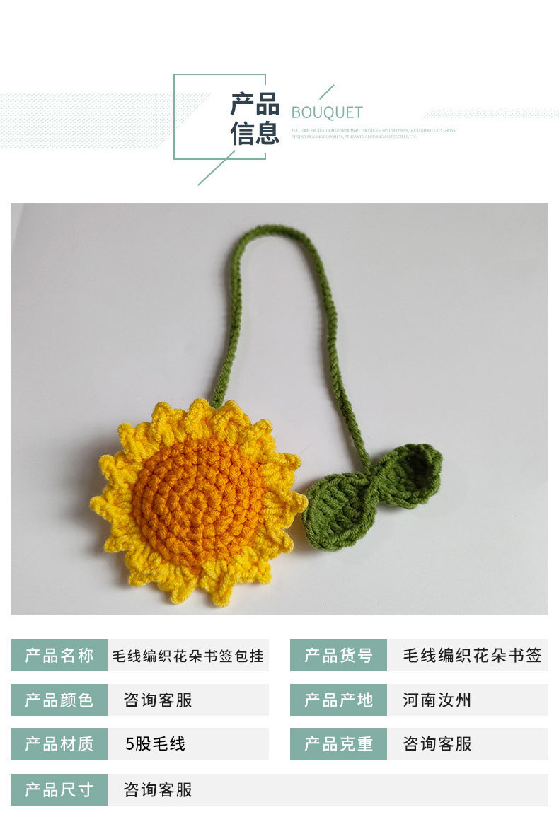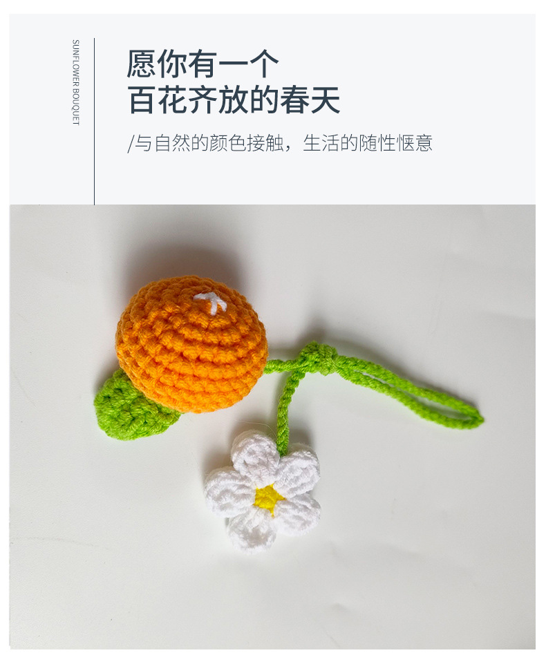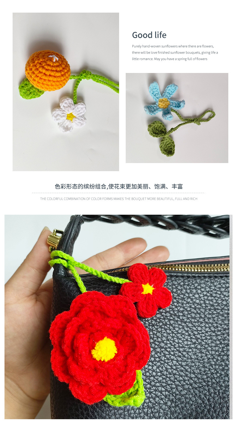 Hecho tejida a mano planta de lana bricolaje llavero girasol Camelia pequeña bolsa colgante producto terminado