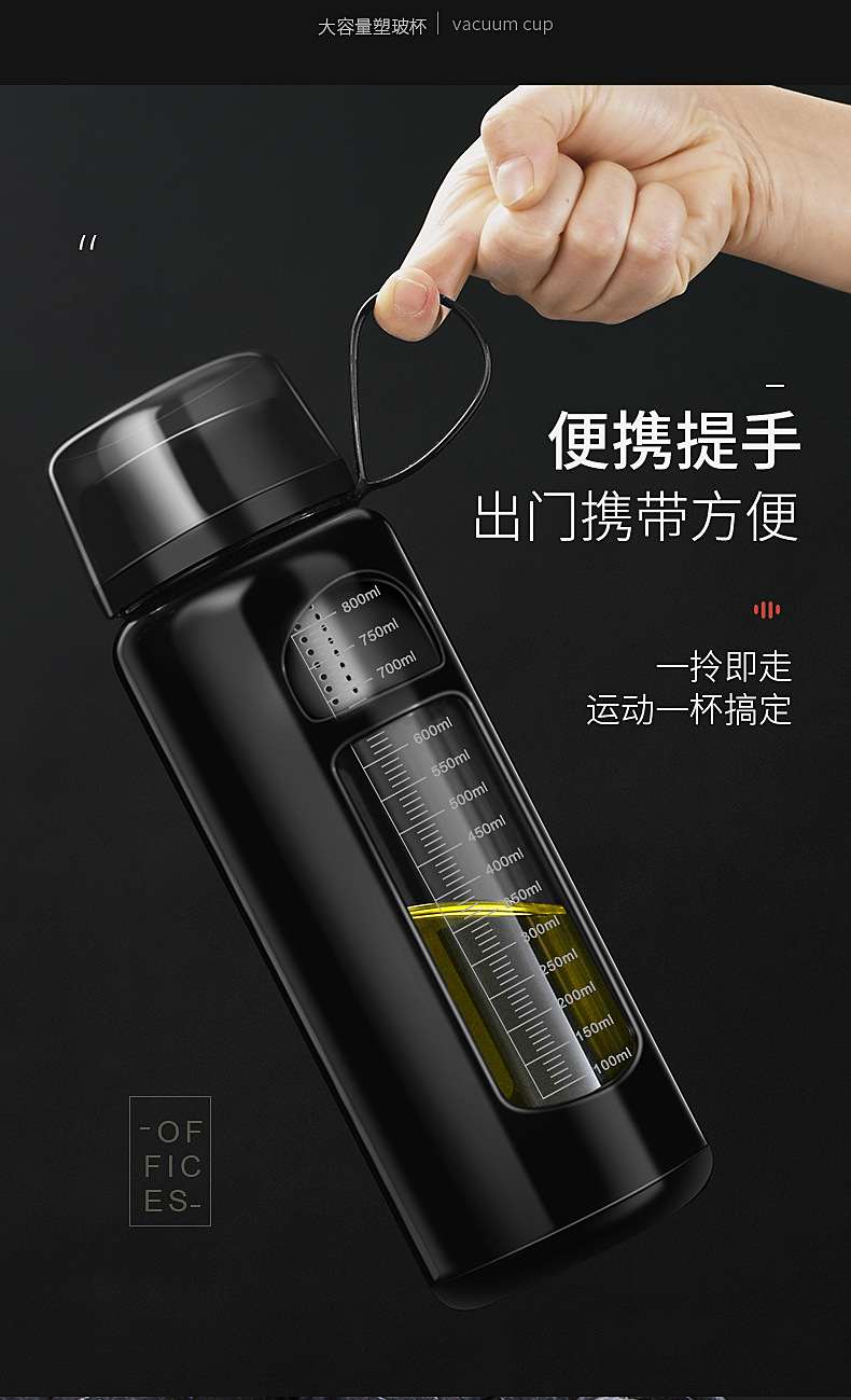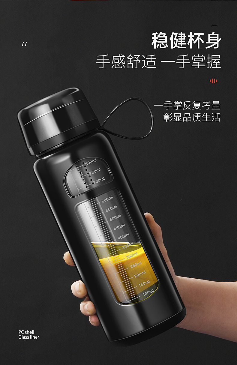 Nuevo vidrio de gran capacidad con Shell simple y conveniente de doble capa taza recta de doble capa de aislamiento térmico regalo de negocios taza de agua