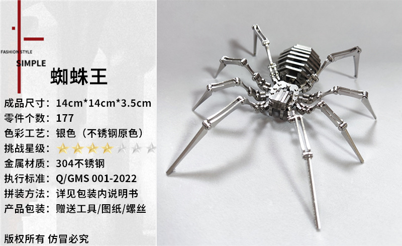 Monstruo de acero araña rey Plus metal montaje modelo tridimensional rompecabezas mecánico insecto niños hechos a mano juguetes creativos