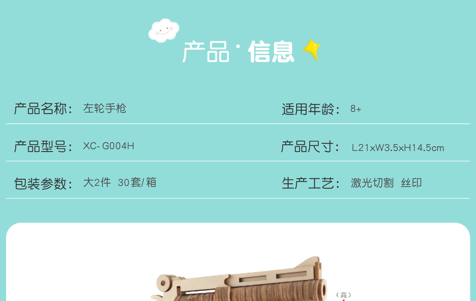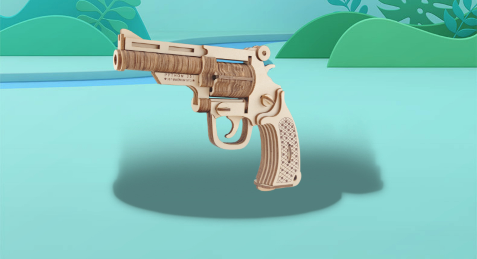 Xinlian fábrica directa transfronteriza revólver Niño de madera DIY modelo de simulación hecha a mano rompecabezas educativo juguete