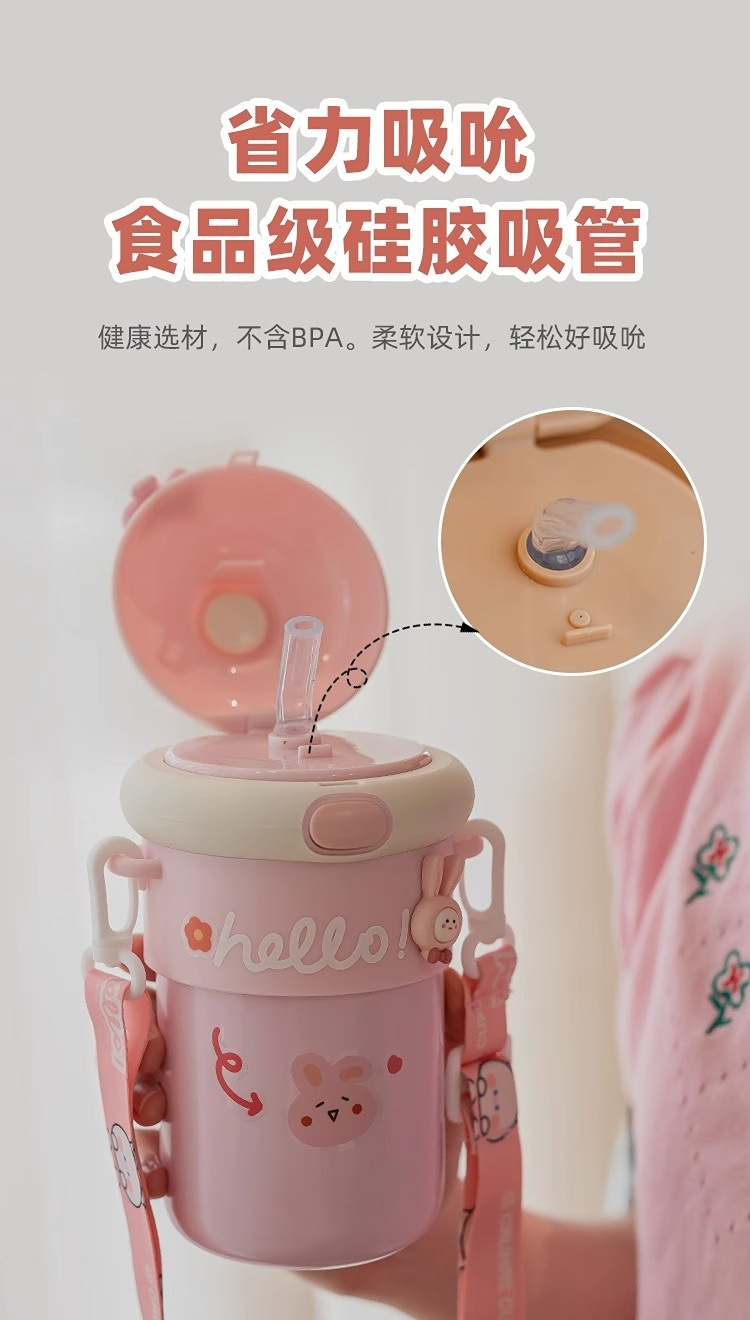 Botón rebote Taza de aislamiento de vidrio de doble capa anti-escaldado Taza de agua Linda etiqueta 3D correa de la Copa de paja taza portátil