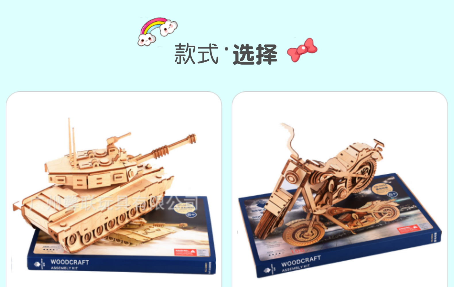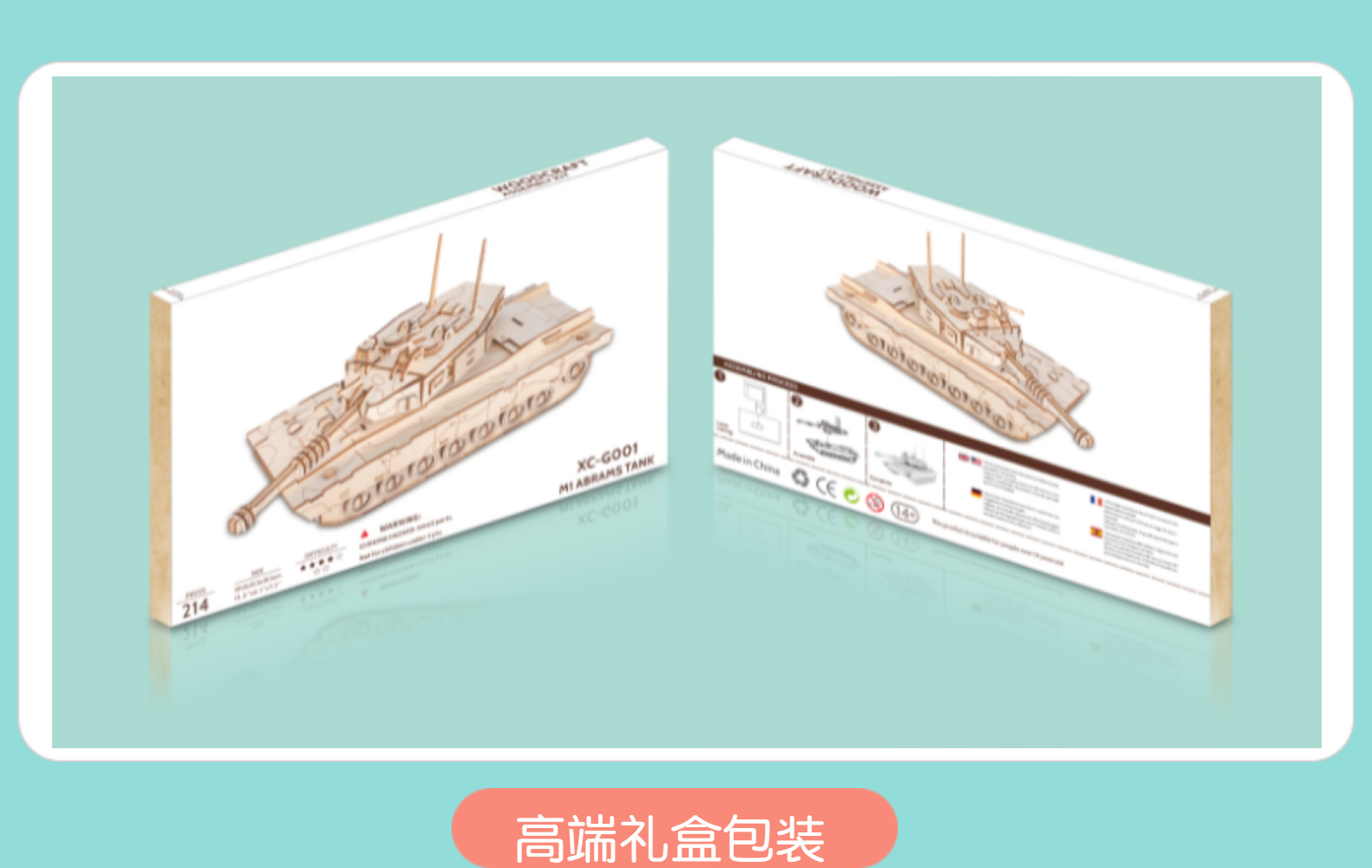 Xinlian fábrica directa 3D tridimensional láser rompecabezas tridimensional de madera rompecabezas de madera montado juguete caja de color tanque