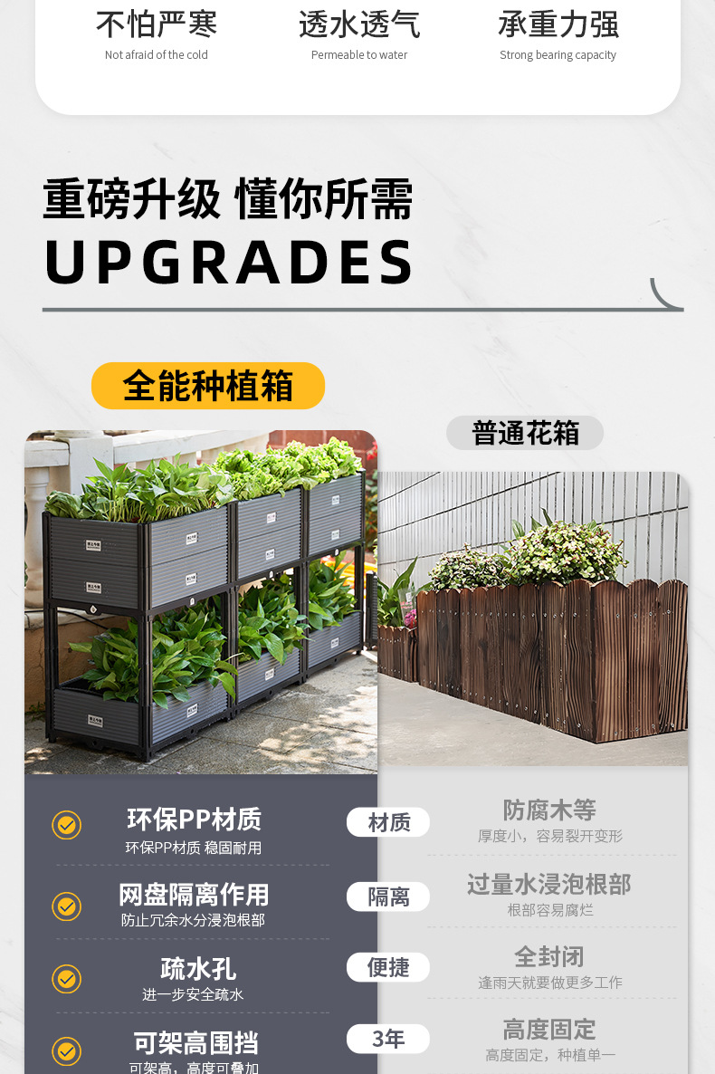 Caja de plantación de vegetales para exterior, extra grande, de plástico profundo, para balcón o patio