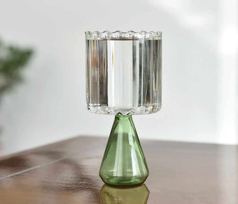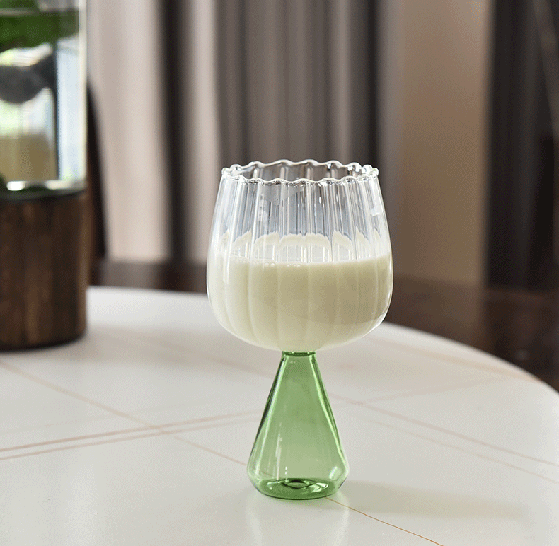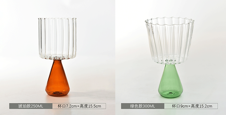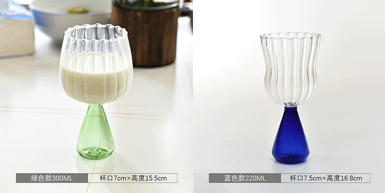 Creativo colorido rayado taza de vidrio taza de agua jugo taza de café desayuno taza de leche bebida taza helado postre taza