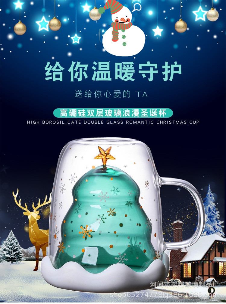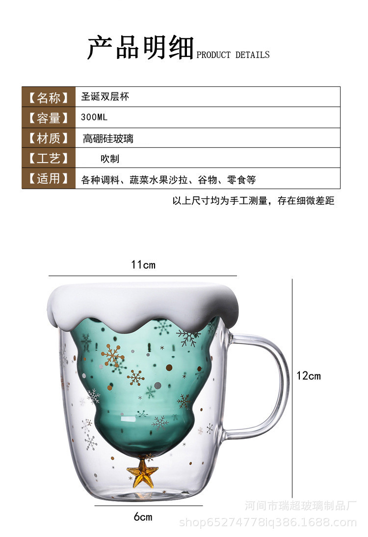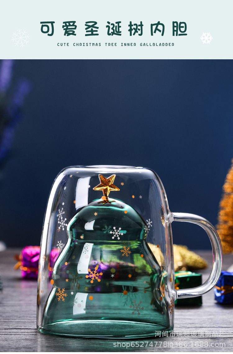 Taza navideña de vidrio de doble capa con asa, diseño de estrella y deseos, ideal para leche o jugo