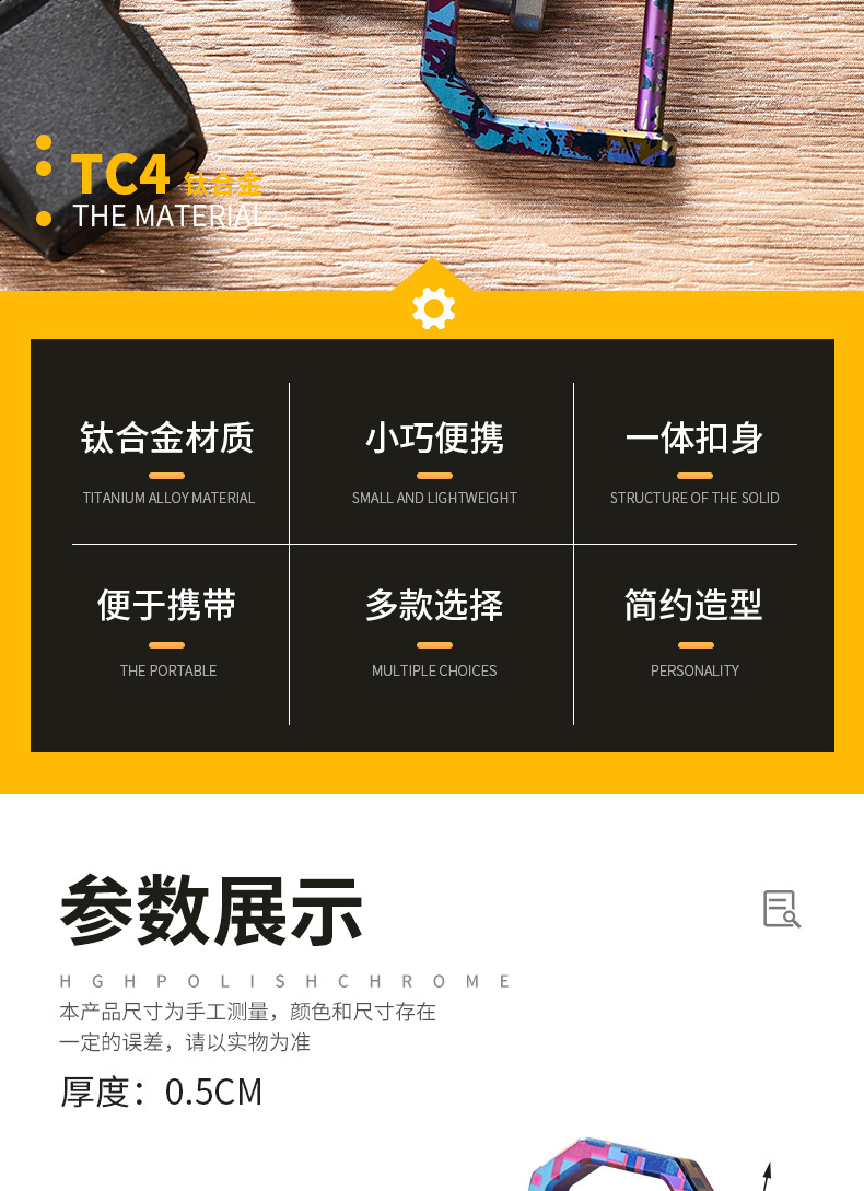 Mini hebilla de herradura de aleación de titanio con destornillador llavero de coche al aire libre al por mayor hebilla en forma de D portátil multifunción