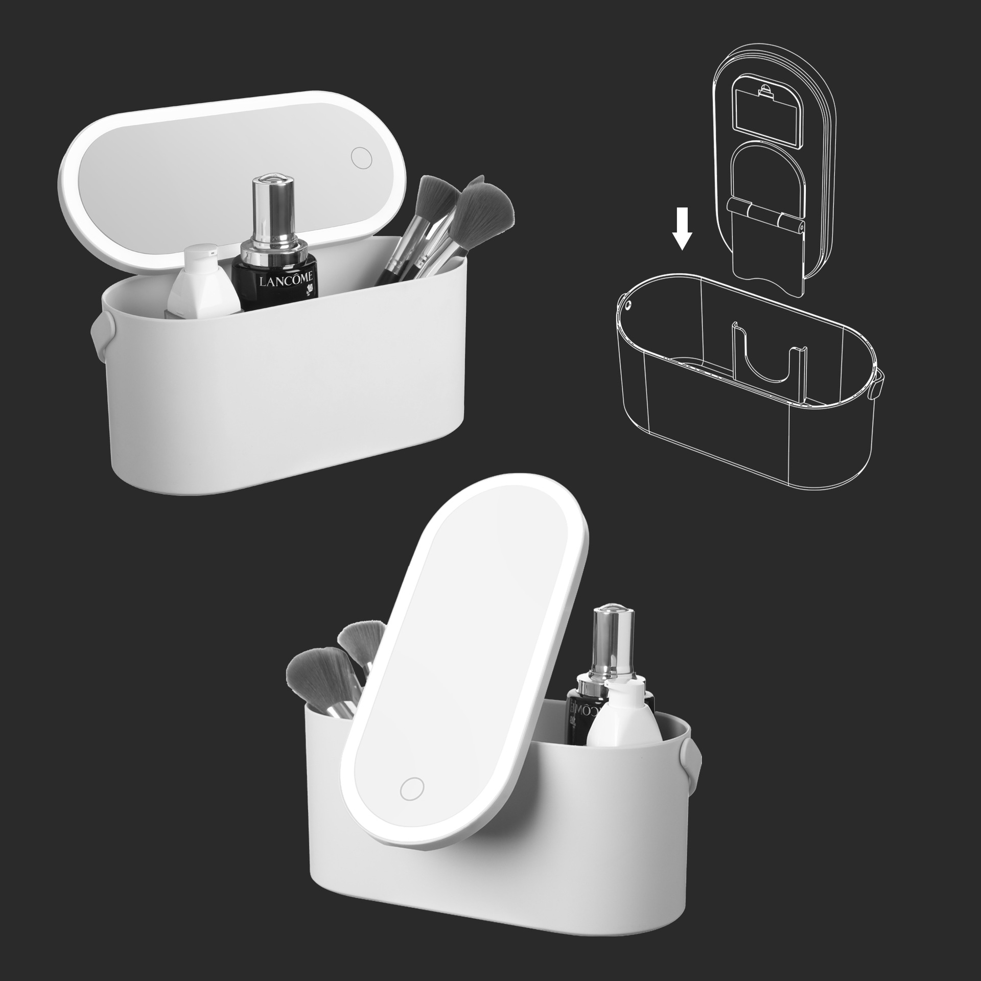 | Punto de venta 1 | Espejo de maquillaje de escritorio LED + caja de almacenamiento. |