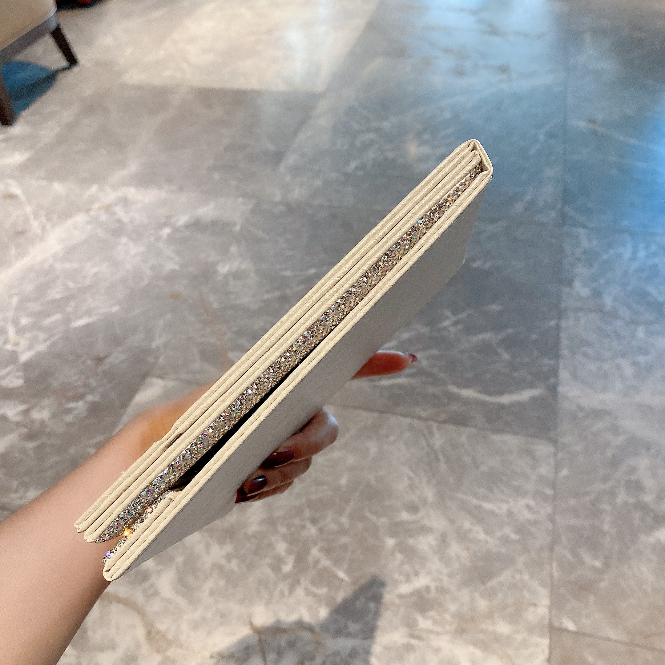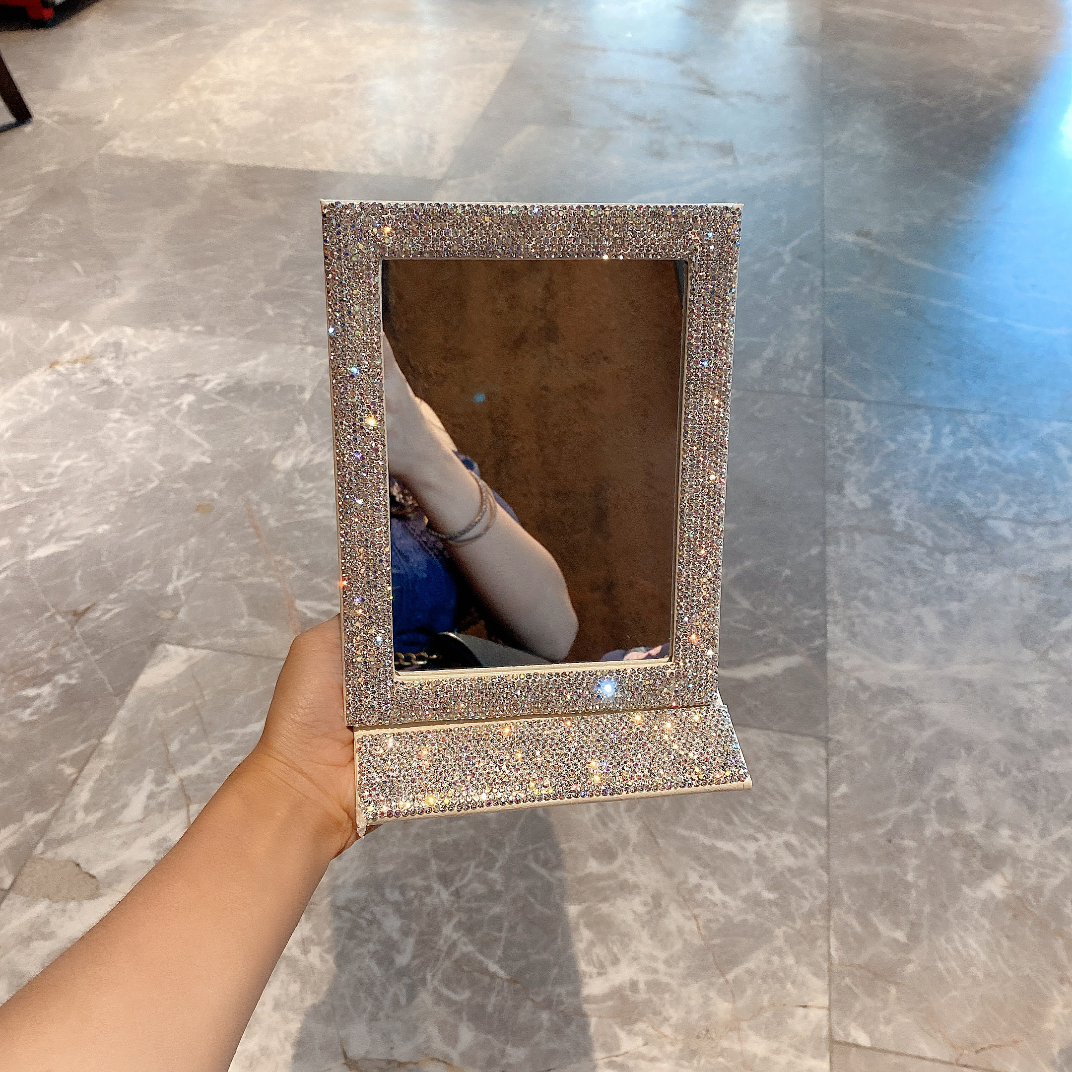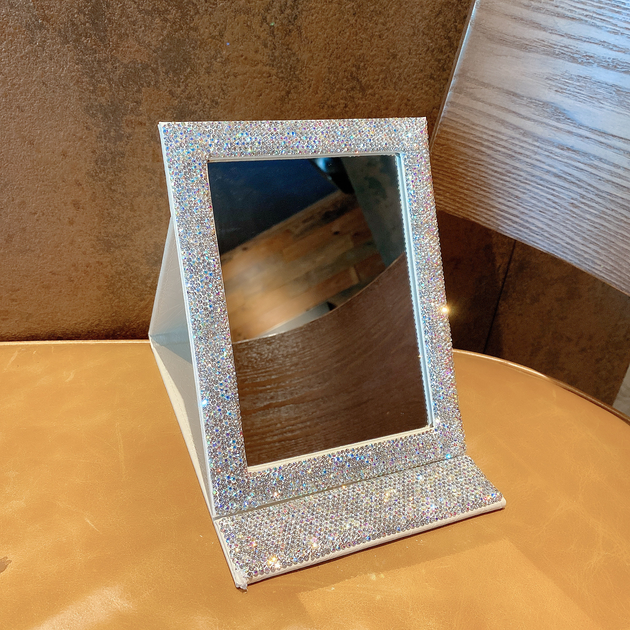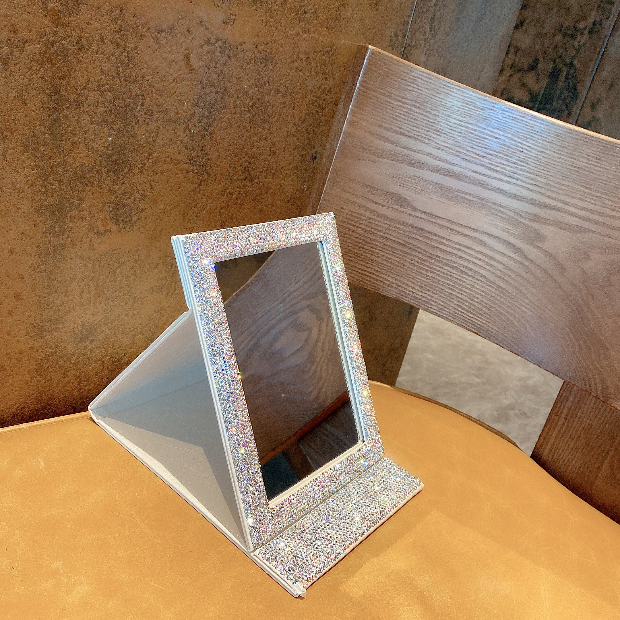 Diamante incrustado HD espejo plegable brillo cuero PU cuero chica dormitorio portátil escritorio espejo cosmético