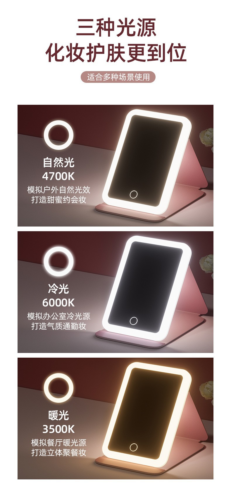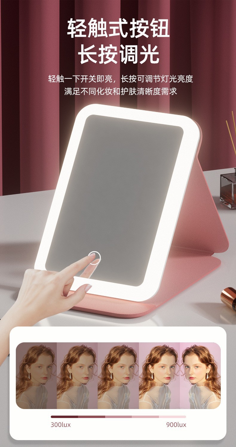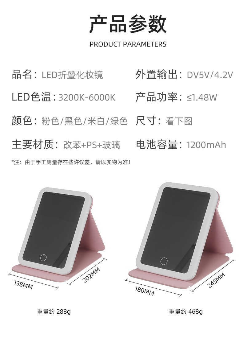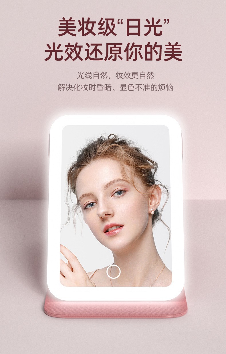 Espejo de maquillaje LED espejo de belleza plegable espejo de maquillaje de escritorio carga con luz de tres colores espejo de relleno de luz entrega al por mayor