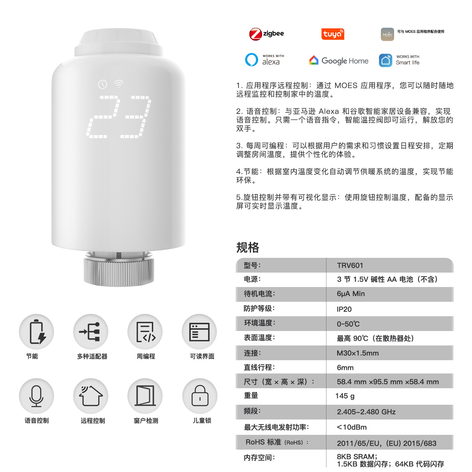 Válvula de calefacción Zigbee para casa inteligente Tuya, termostato de calefacción programable por aplicación, válvula de control de temperatura TRV.