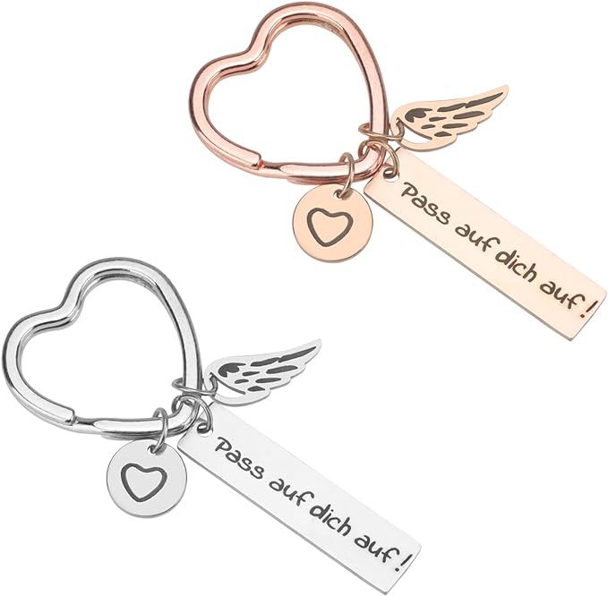 Pasar auf dich auf amor corazón acero inoxidable llavero rosa oro acero color alemán llave de acero inoxidable