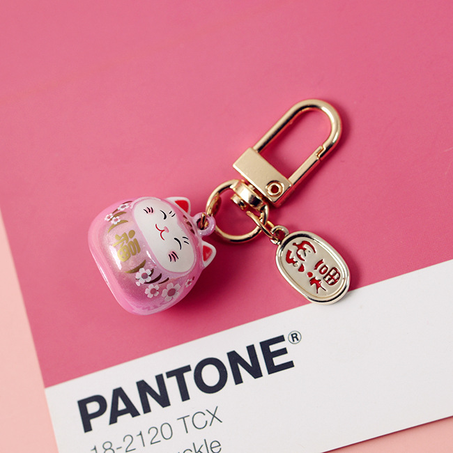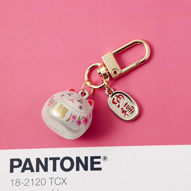 Japonés Yushou lindo Rosa flor de cerezo hueco campana cerámica gato bendición suerte bolsa colgante adornos