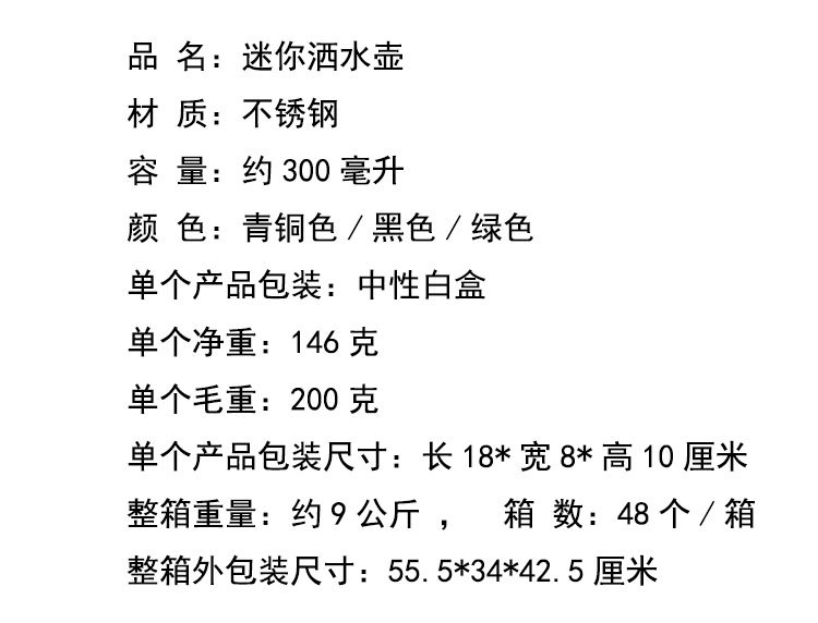 Acero inoxidable regadera metal boca larga negro mini niños regadera de jardinería regadera 300ml