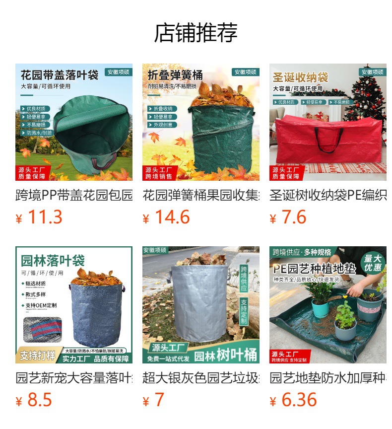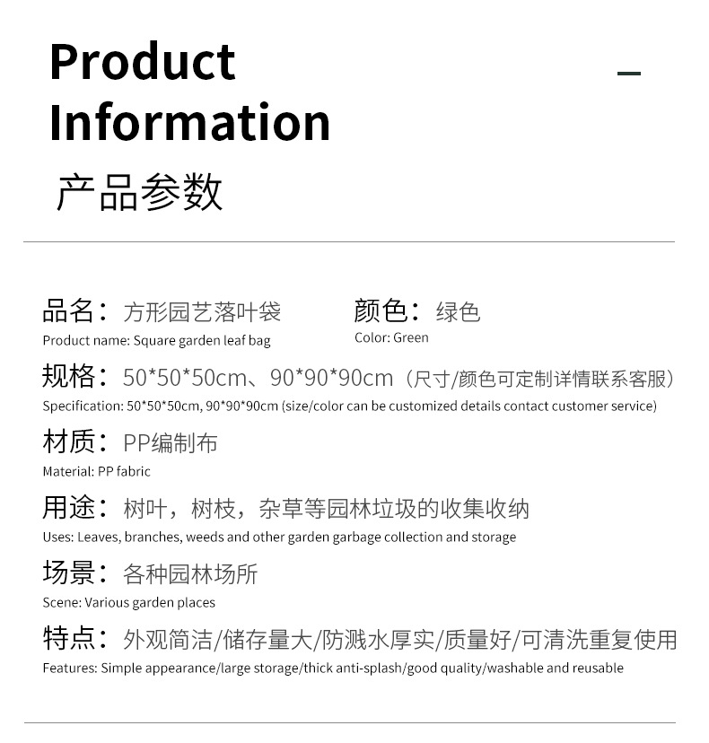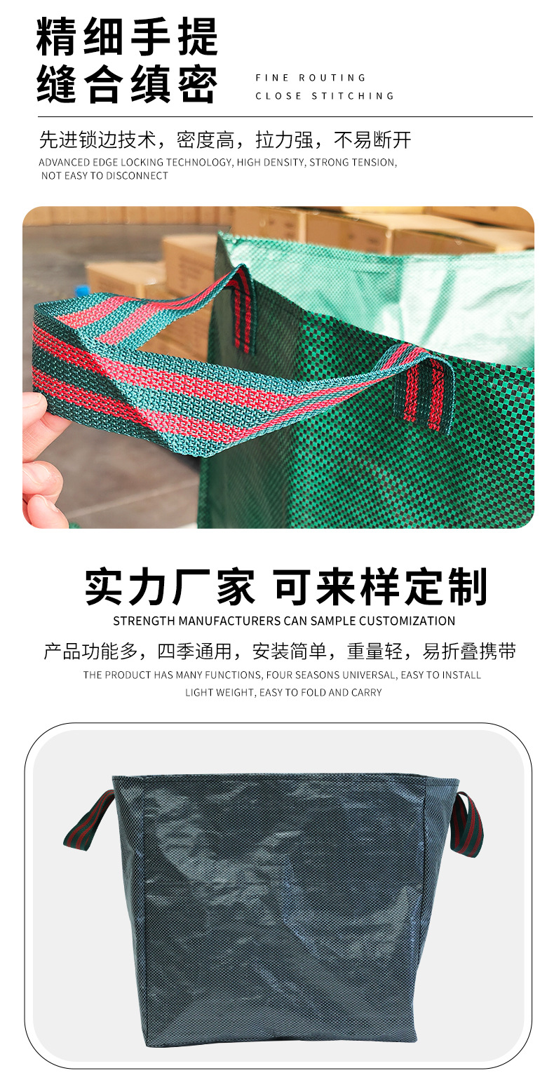 Bolsa de recolección de hojas cuadradas de fábrica de origen PP, bolsa de compostaje para ramas y hojas de jardín, bolsa de almacenamiento de residuos de jardinería, arte floral.