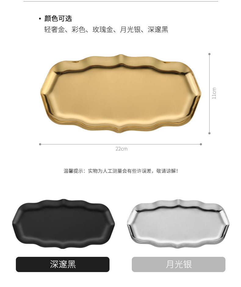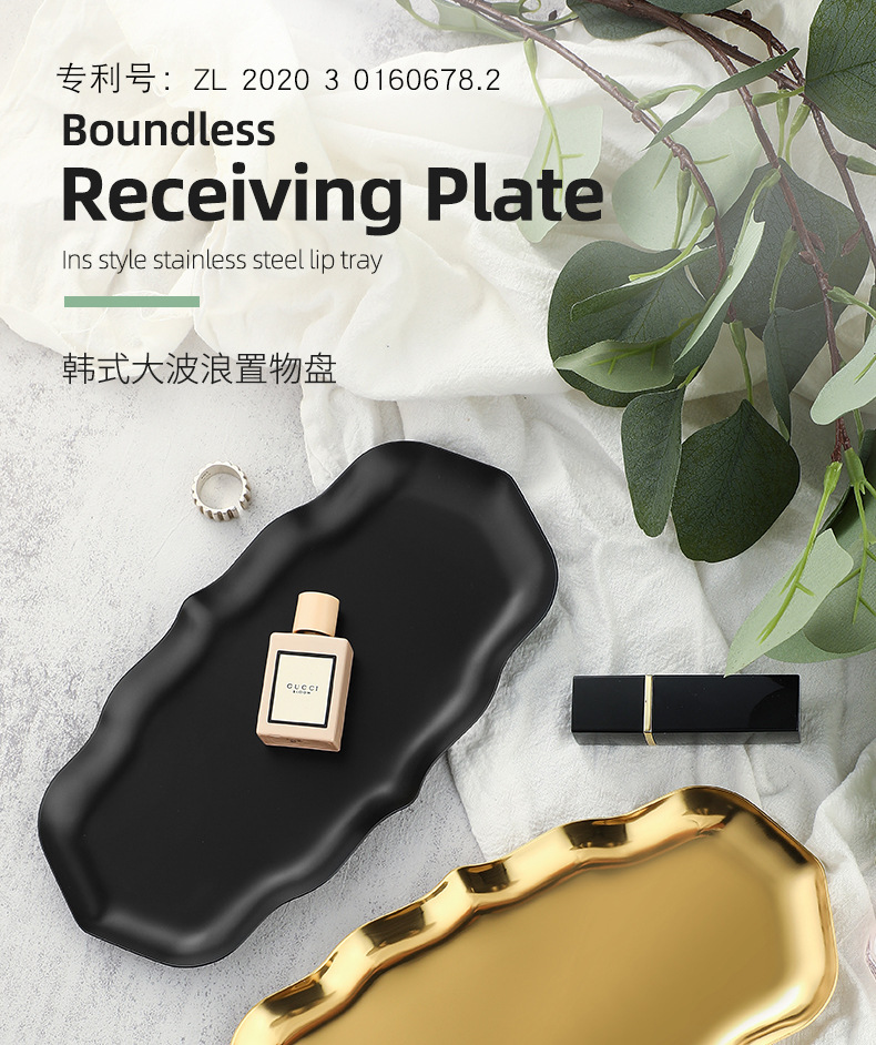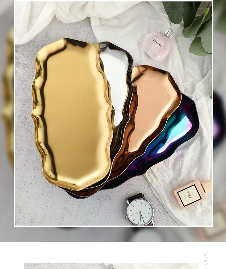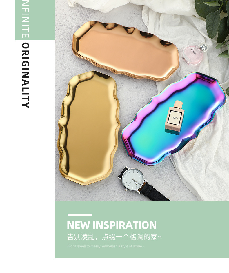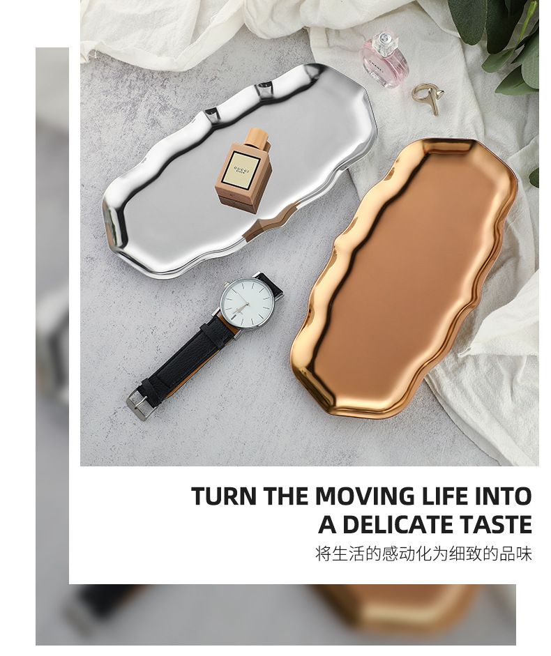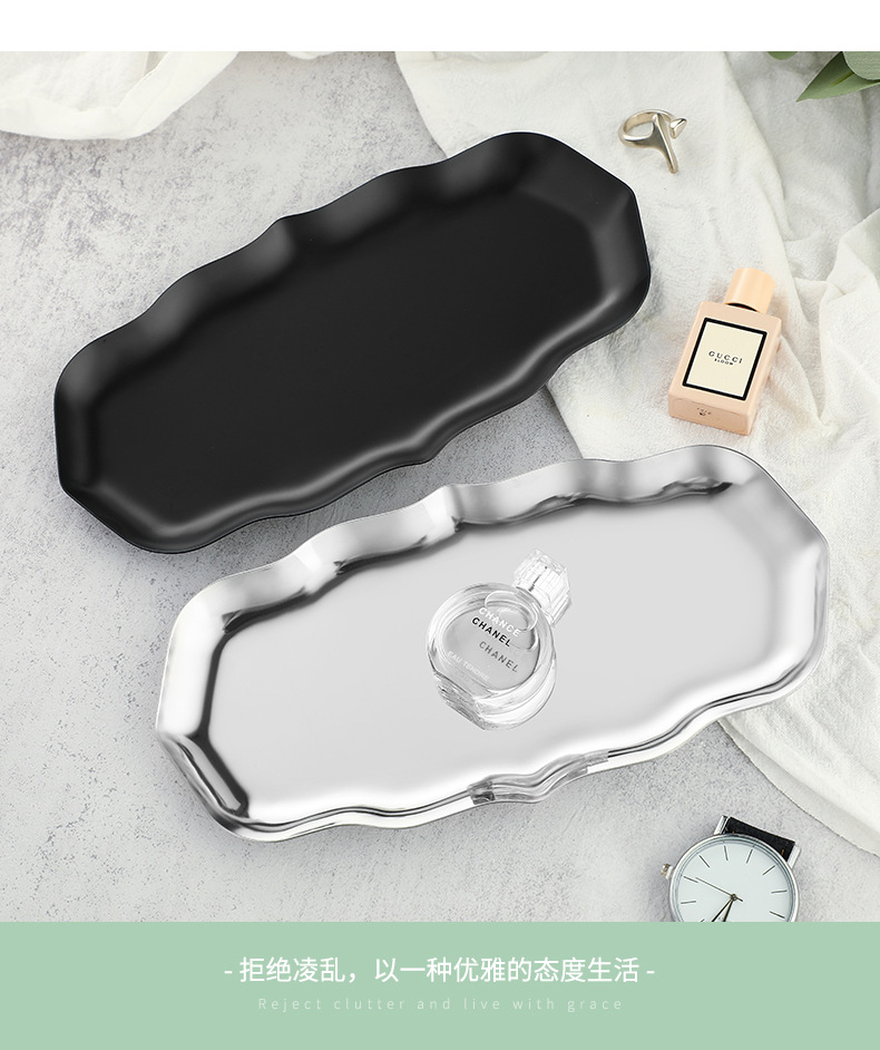 Bandeja de almacenamiento de cosméticos de estilo ins bandeja de joyería de aromaterapia Placa de acero inoxidable creativa bandeja de joyería de metal en forma de onda grande