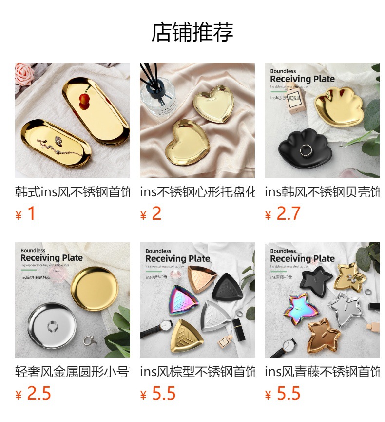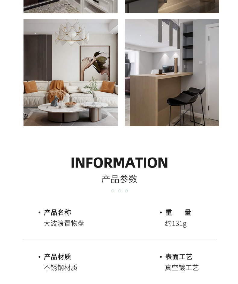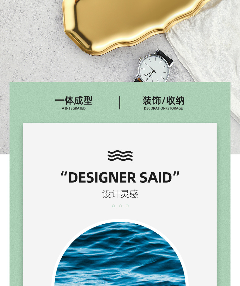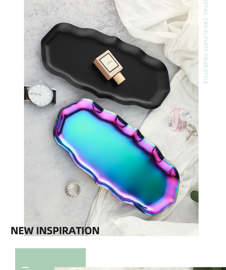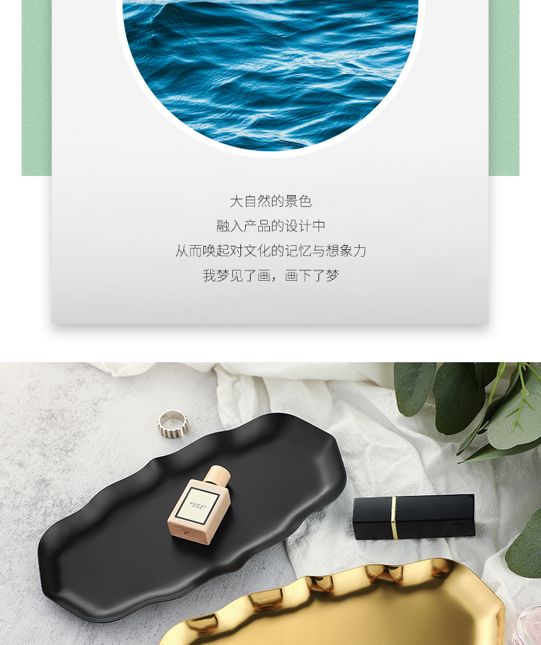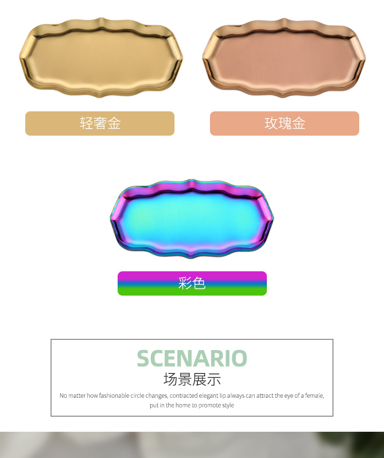 Bandeja de almacenamiento de cosméticos de estilo ins bandeja de joyería de aromaterapia Placa de acero inoxidable creativa bandeja de joyería de metal en forma de onda grande