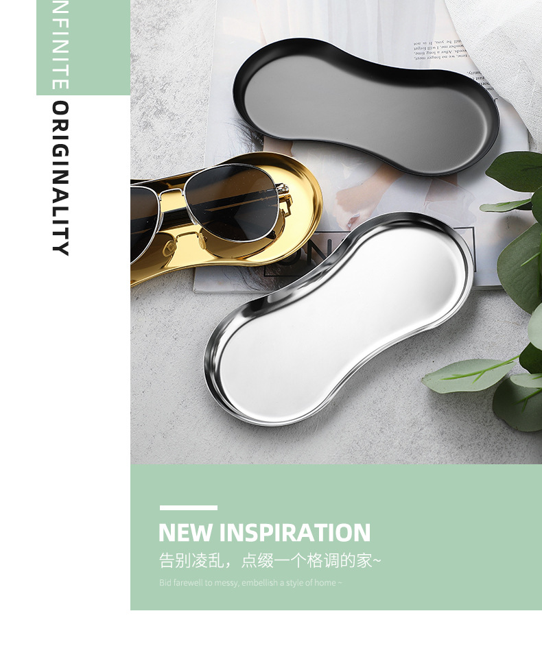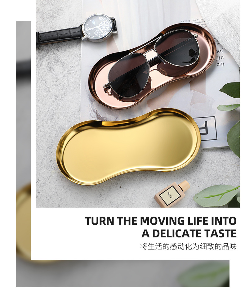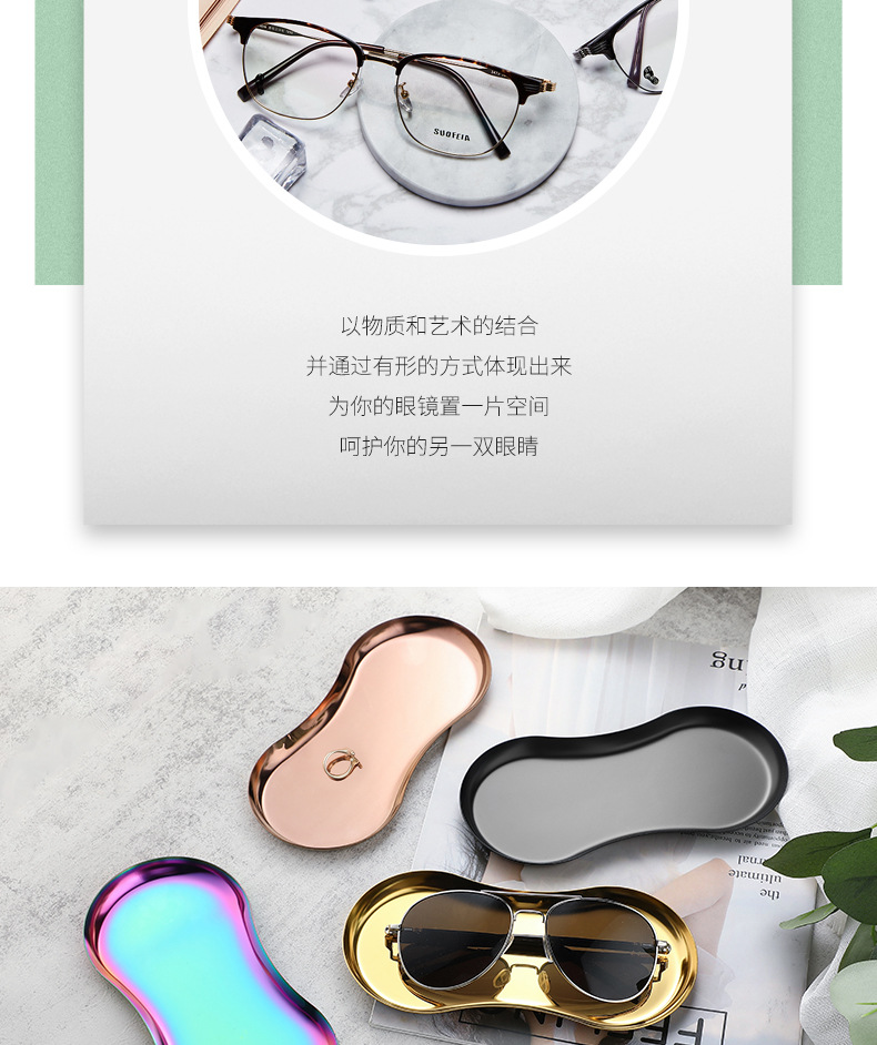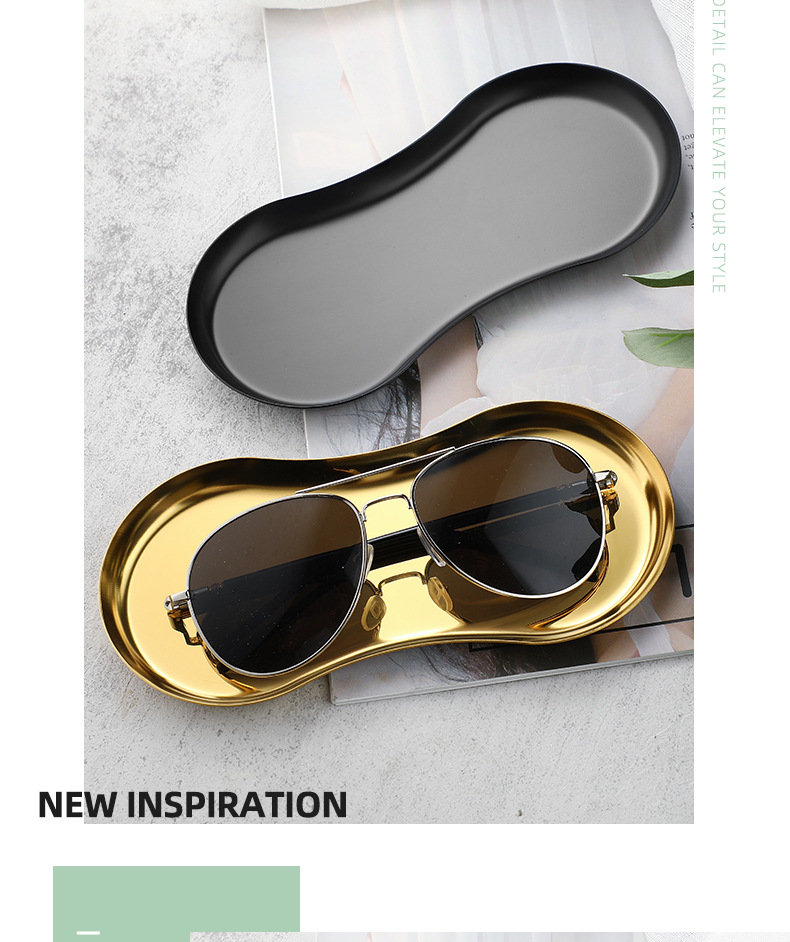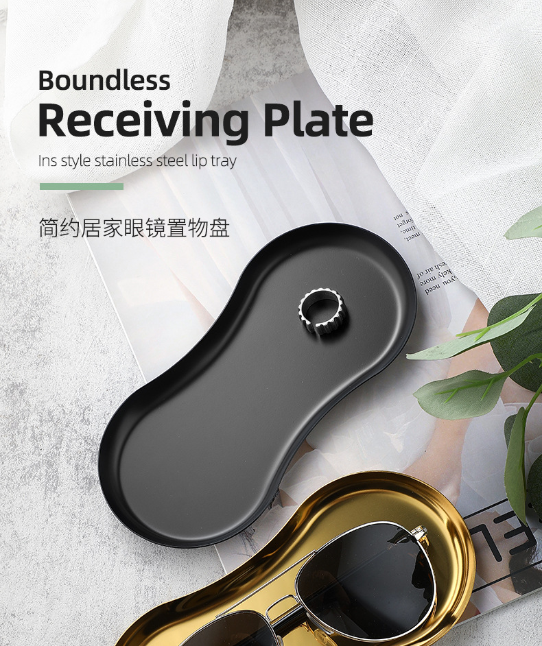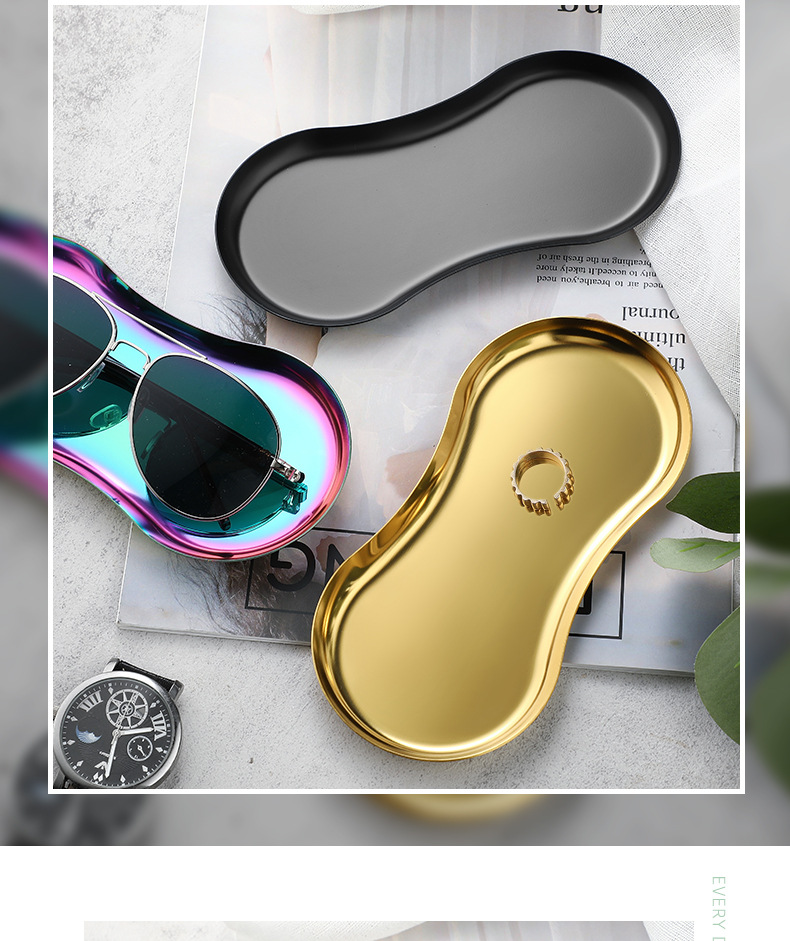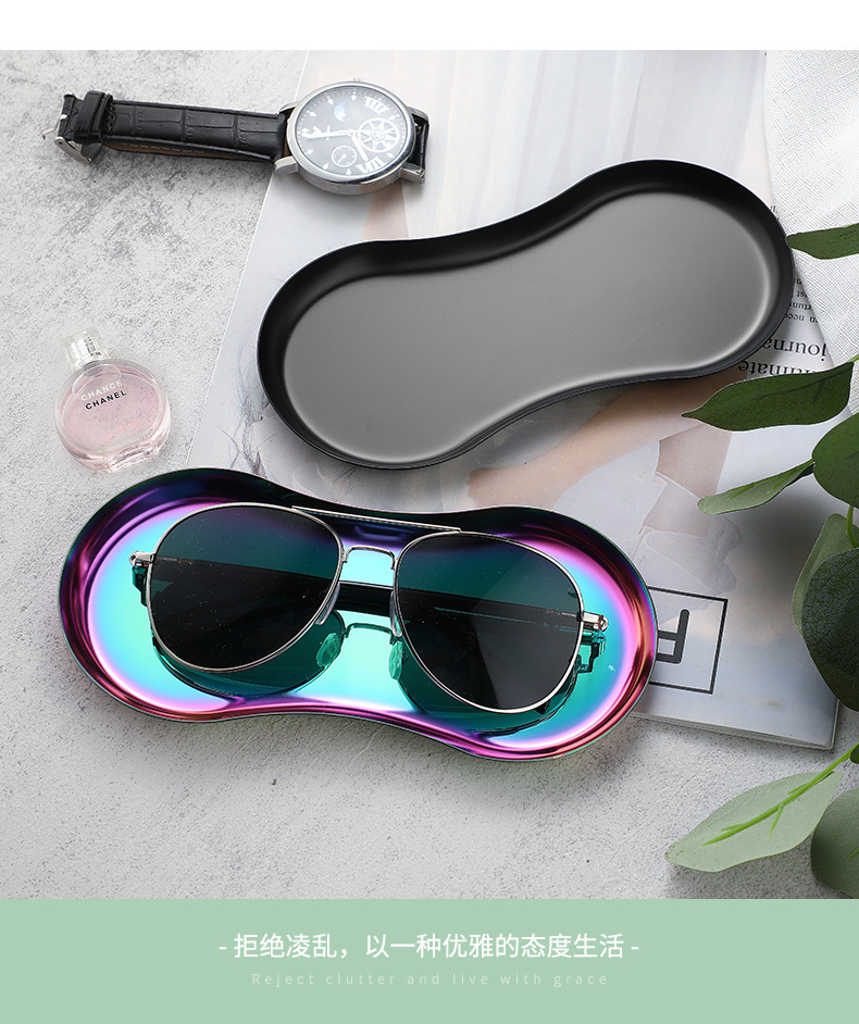 INS estilo de acero inoxidable en forma de gafas placa de la joyería hogar cosméticos Placa de almacenamiento de niñas dormitorio bandeja de metal adornos