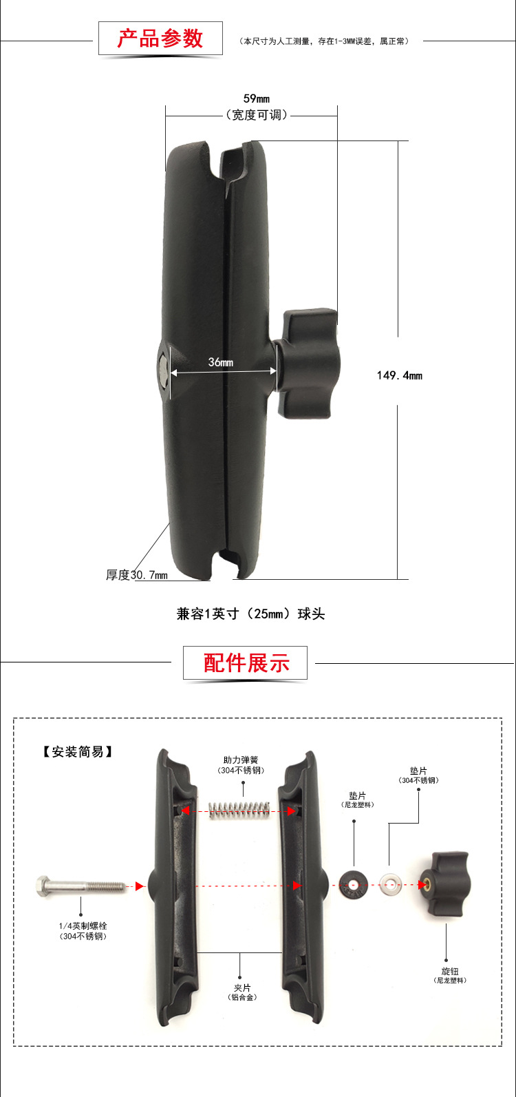 N-STAR transfronterizo dedicado 15cm alargado accesorios de biela cabeza de bola Clip 1 pulgadas ajustable accesorios fijos