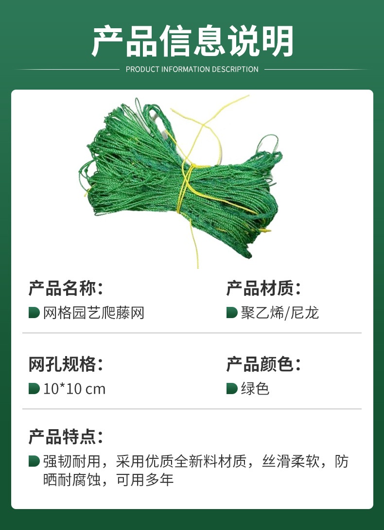 Planta red de escalada jardinería verde celosía cuadrada pepino melón colgante soporte de red de escalada crisantemo anti-viento y red de alojamiento