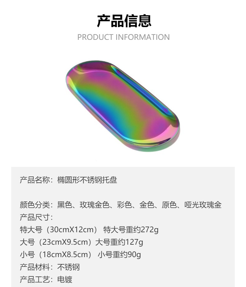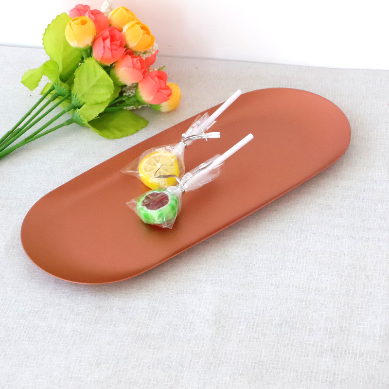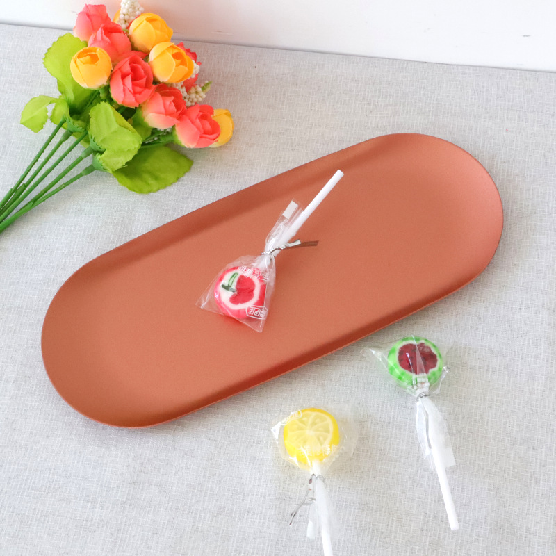 Fábrica al por mayor Acero inoxidable latón oro color primario color oval metal bandeja fruta caramelo bandeja de almacenamiento