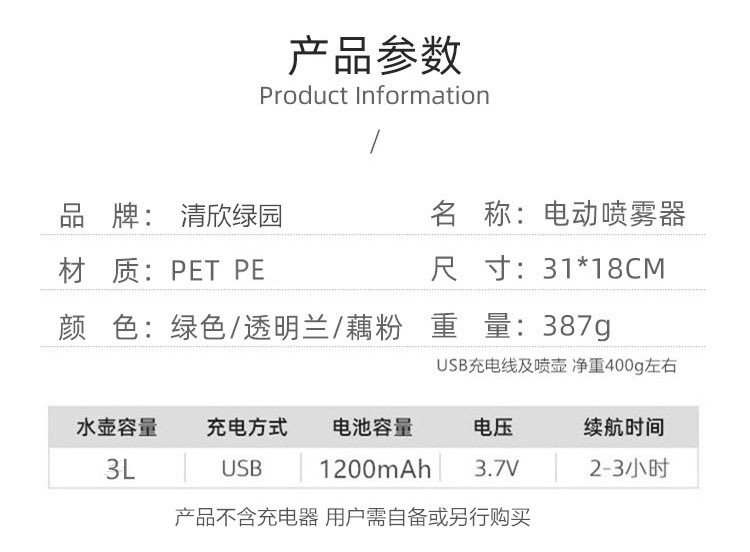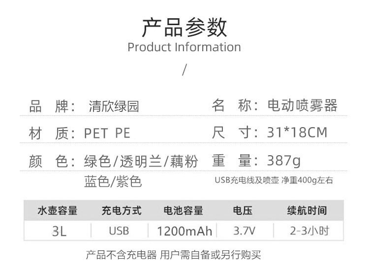 Regadera eléctrica simple 3L regadera puede rociar 84 desinfectante alcohol jardinería rociador automático regadera
