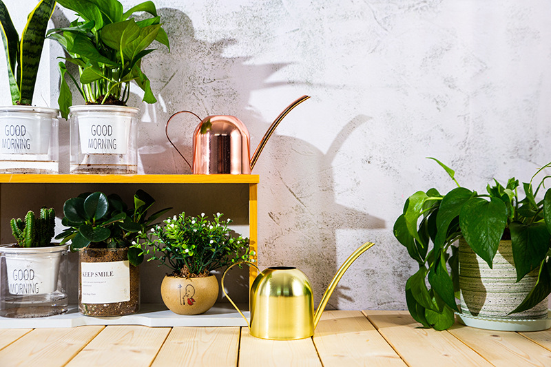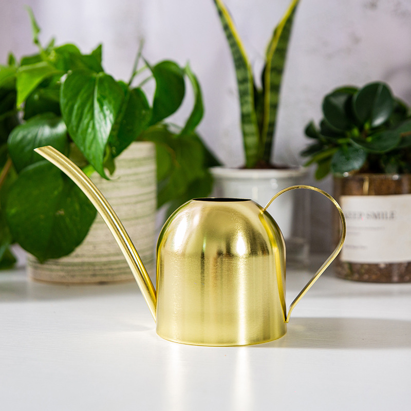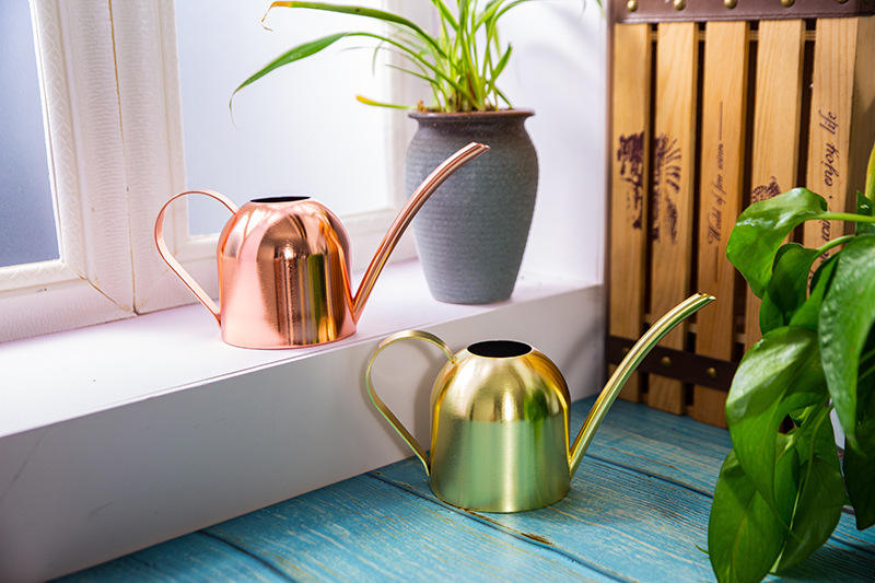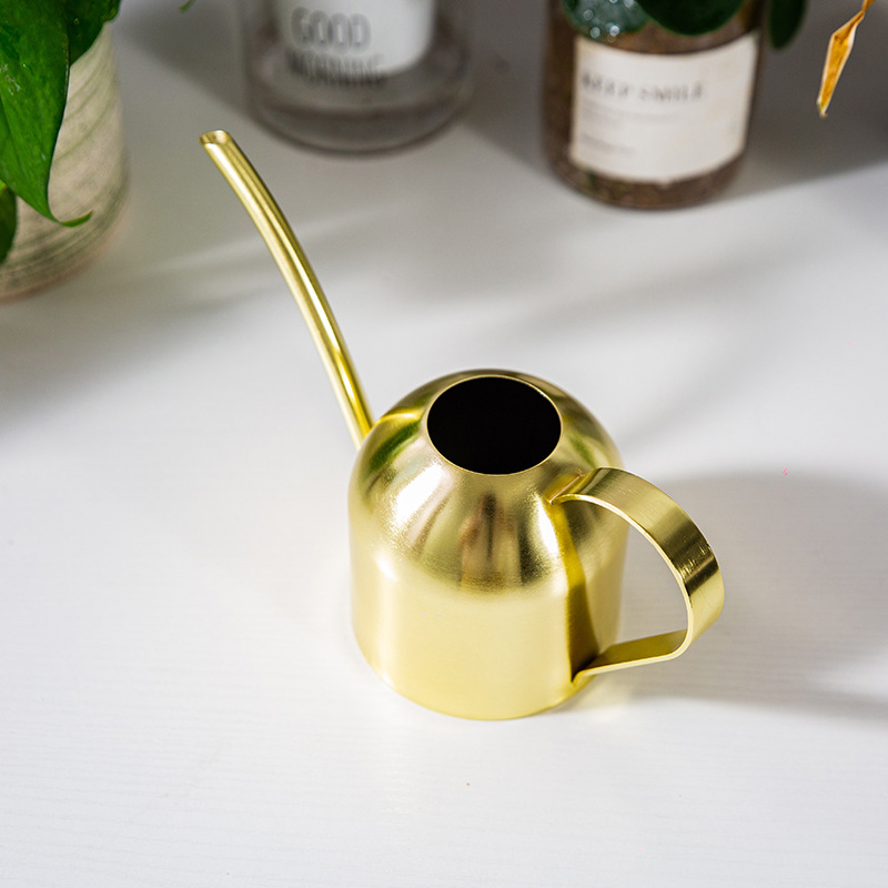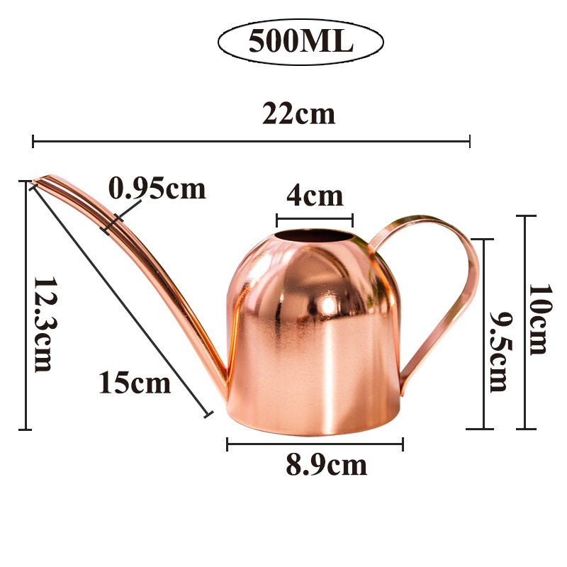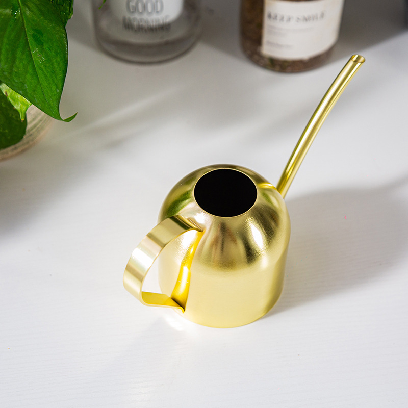 Acero inoxidable boca larga regadera metal planta verde regadera de oro pequeña regadera jardinería 500ml
