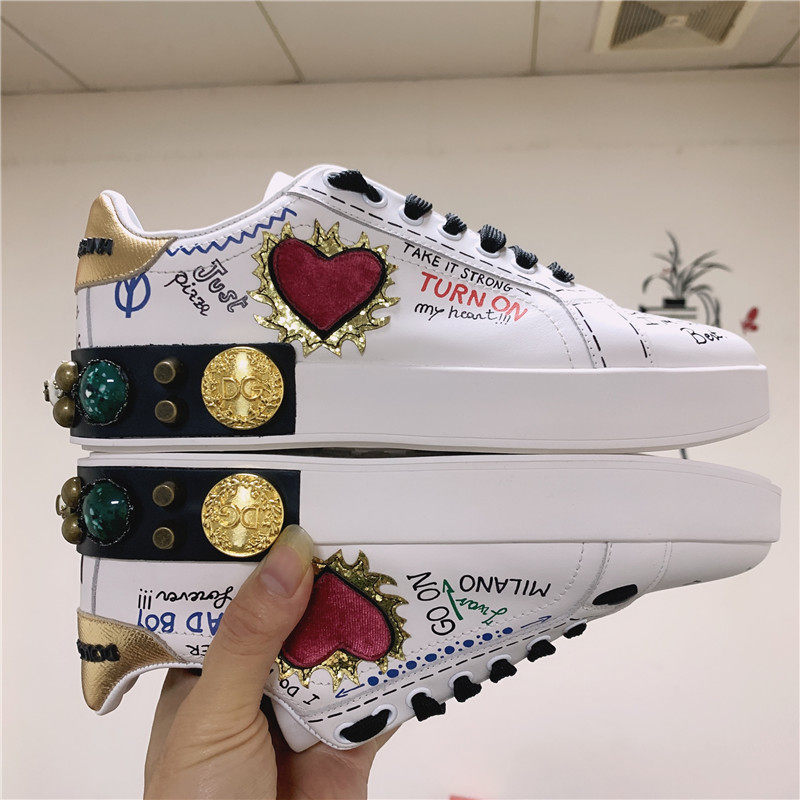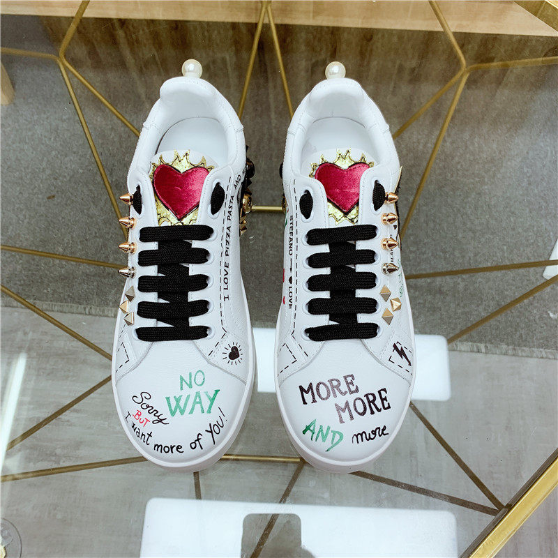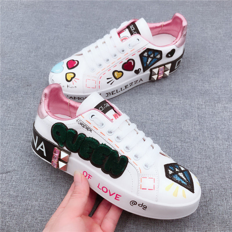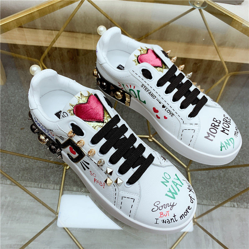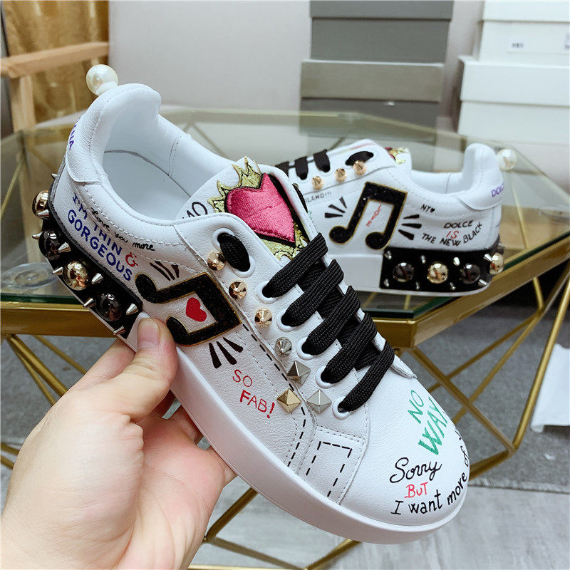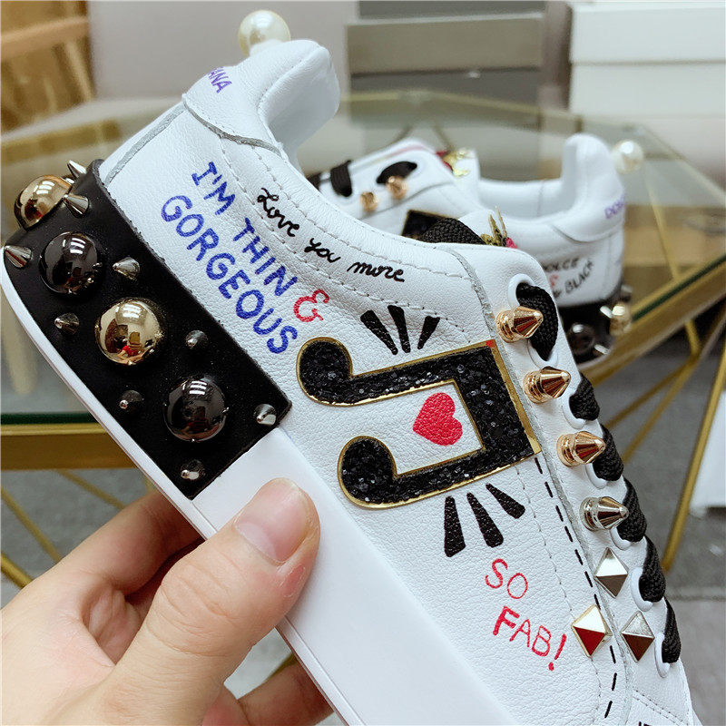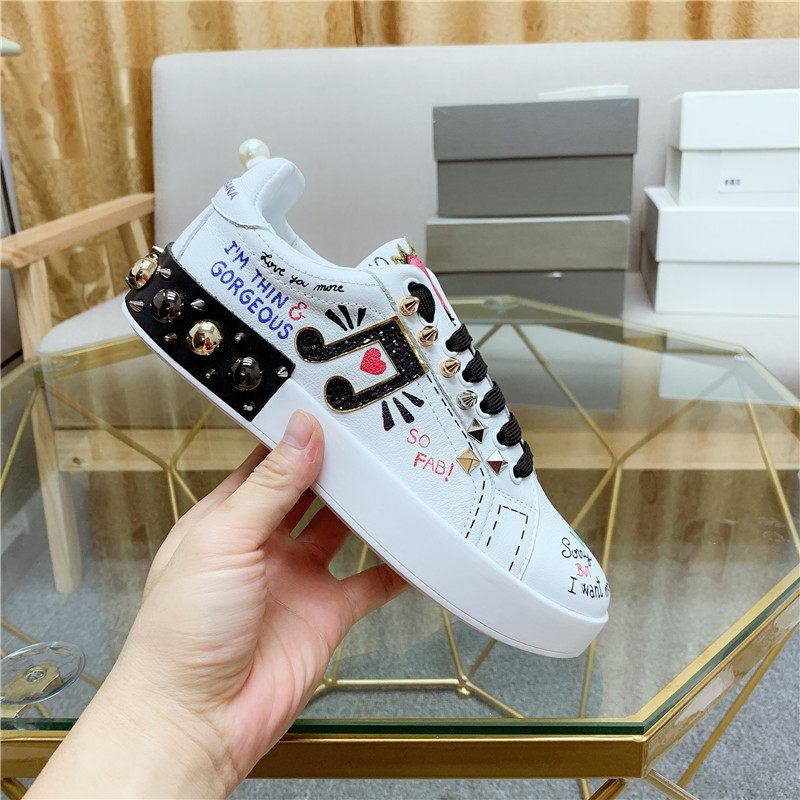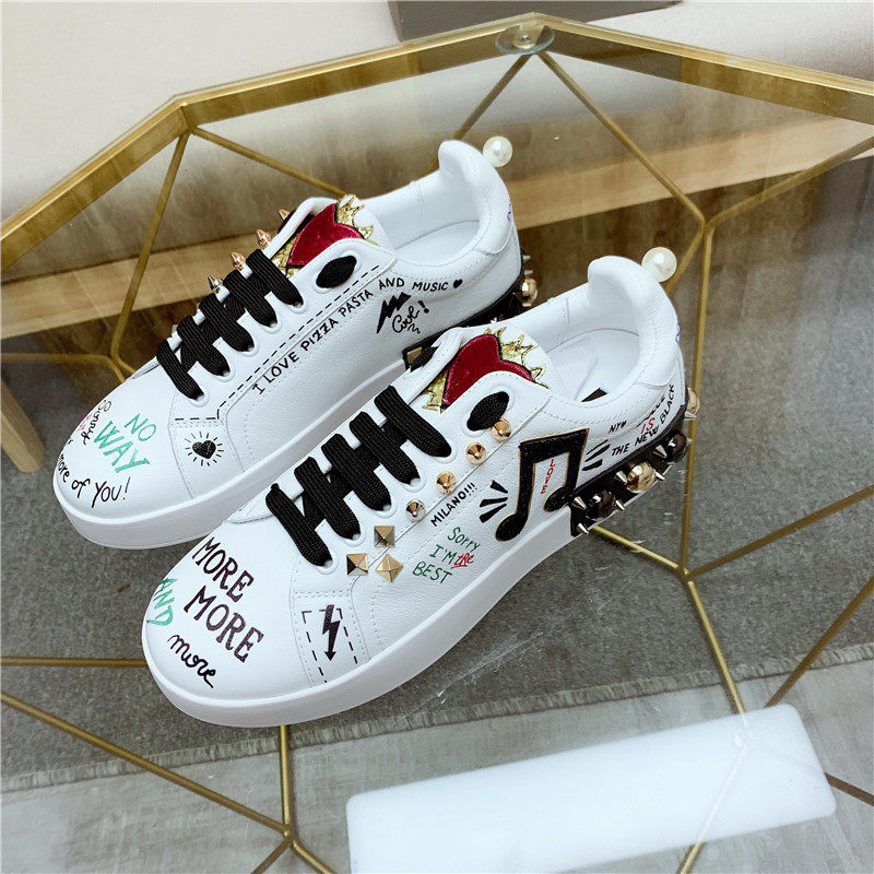 Versión superior Comercio exterior Pedido original Reba mismo estilo cuero genuino DG2023 remache graffiti zapatos blancos zapatos de pareja de hombres zapatos de moda mujeres