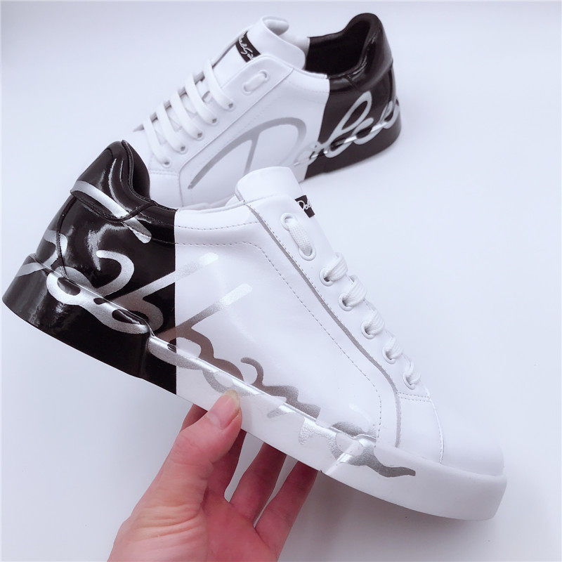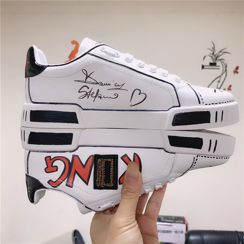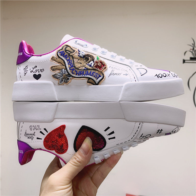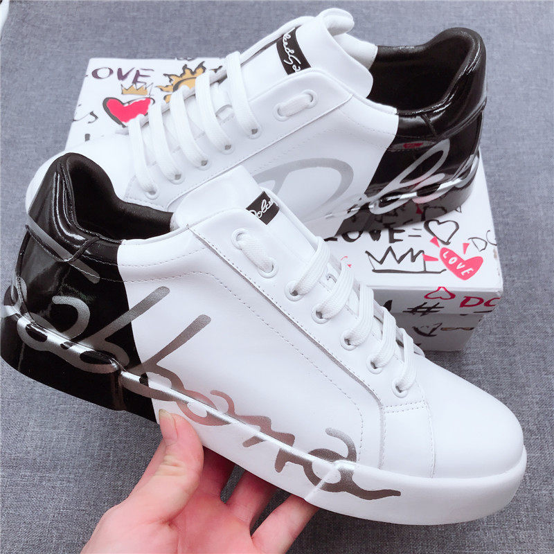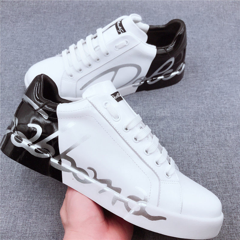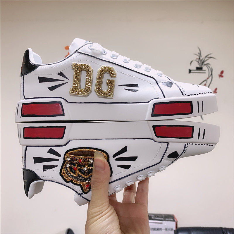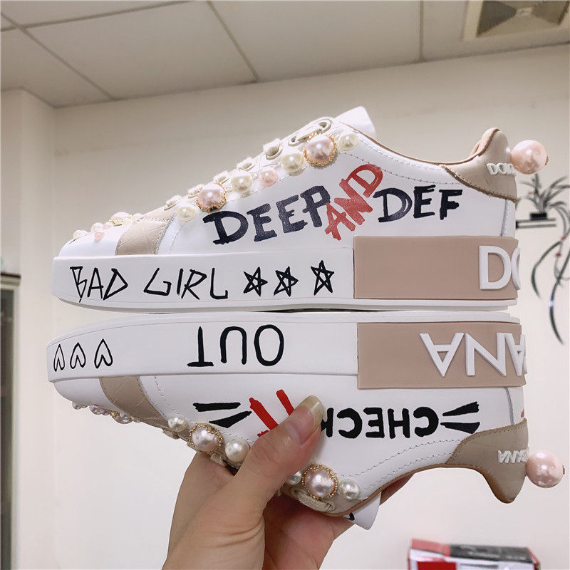Versión superior Comercio exterior Pedido original Reba mismo estilo cuero genuino DG2023 remache graffiti zapatos blancos zapatos de pareja de hombres zapatos de moda mujeres
