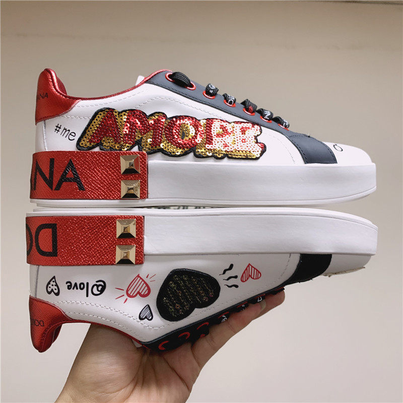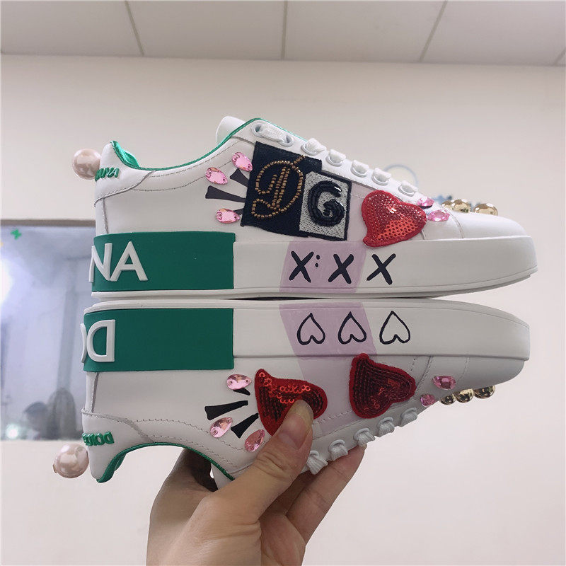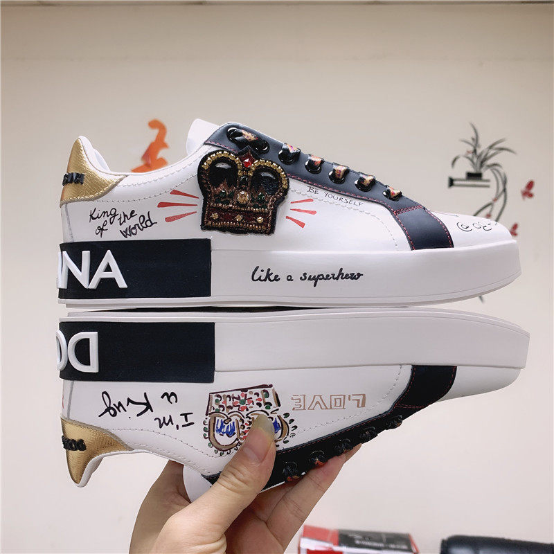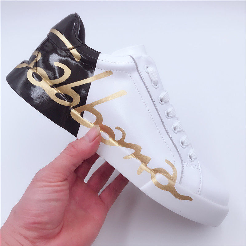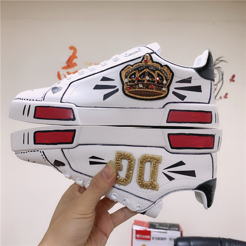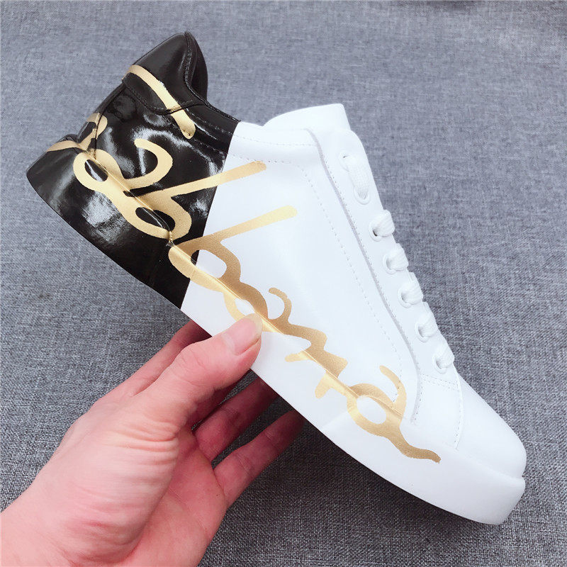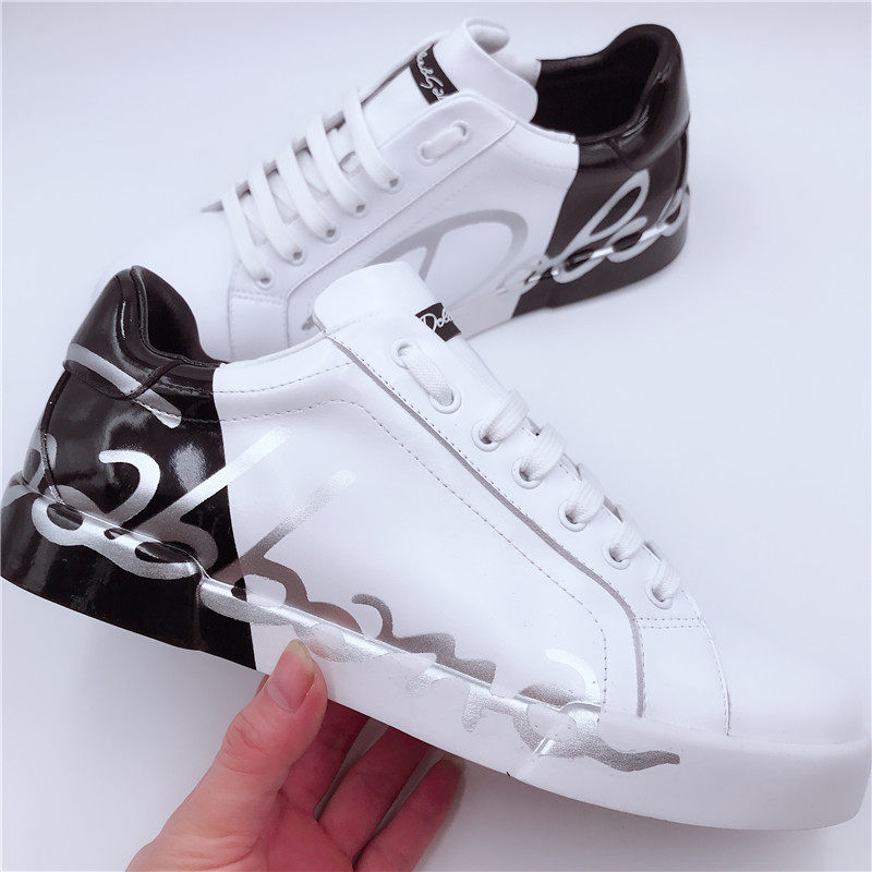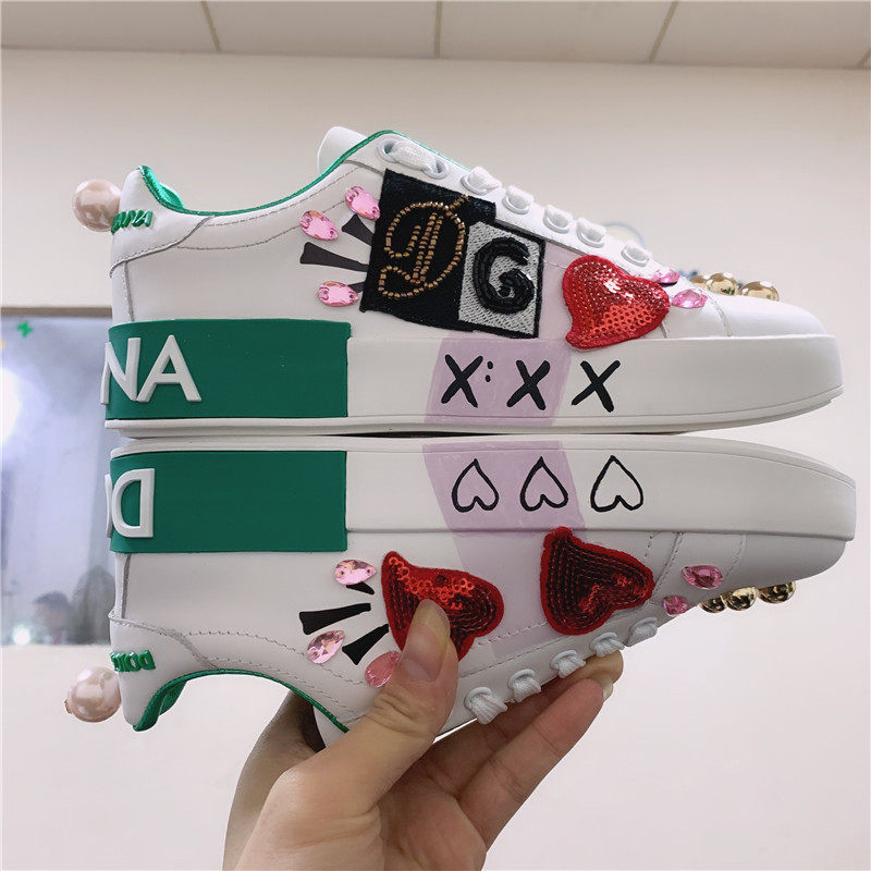 Versión superior Comercio exterior Pedido original Reba mismo estilo cuero genuino DG2023 remache graffiti zapatos blancos zapatos de pareja de hombres zapatos de moda mujeres