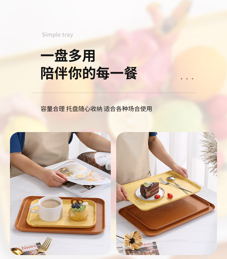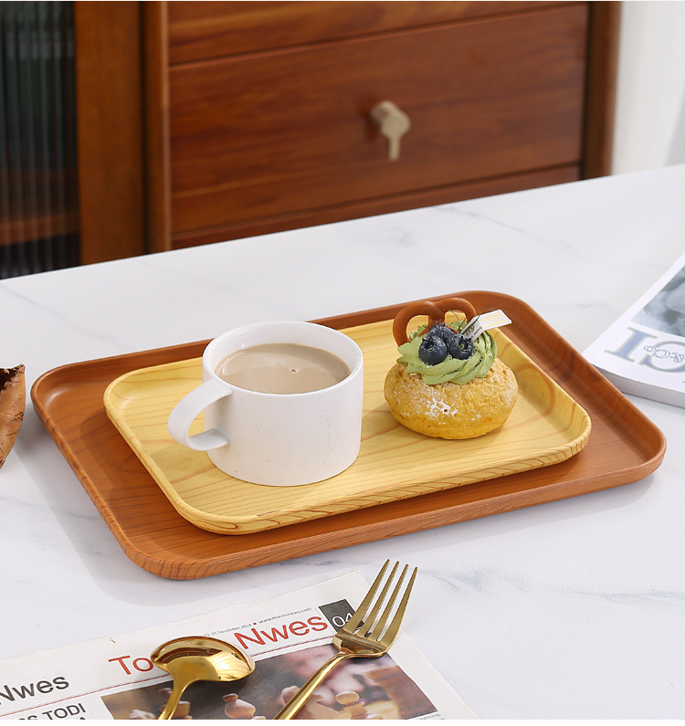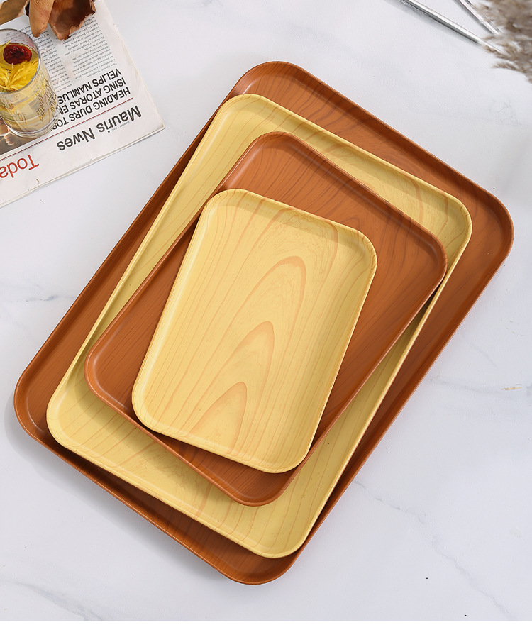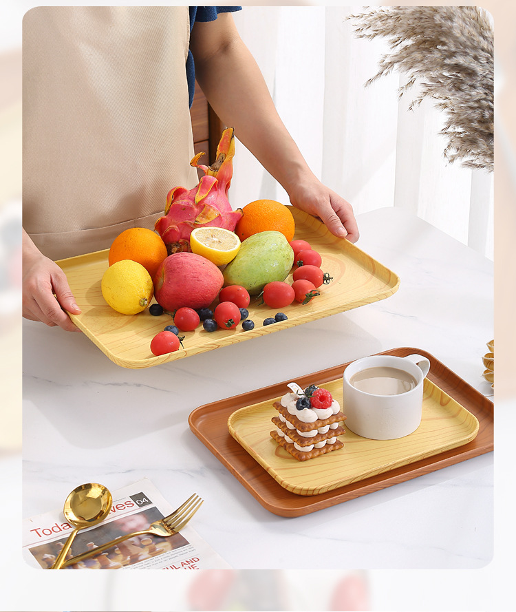 Plástico imitación madera grano rectangular bandeja Hogar Japonés creativo Hotel fruta Placa de almacenamiento luz lujo estilo sala de estar swing placa