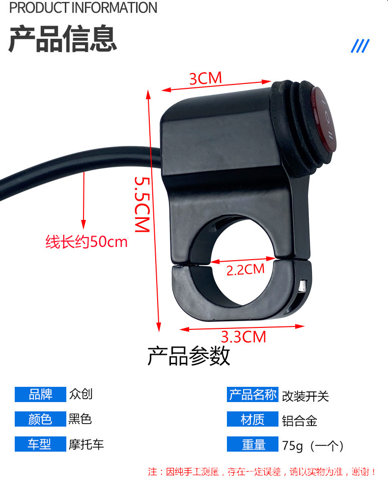 Accesorios de la motocicleta modificación interruptor de aleación de aluminio a prueba de agua luz roja interruptor de tres engranajes faro LED spotlight interruptor de alimentación