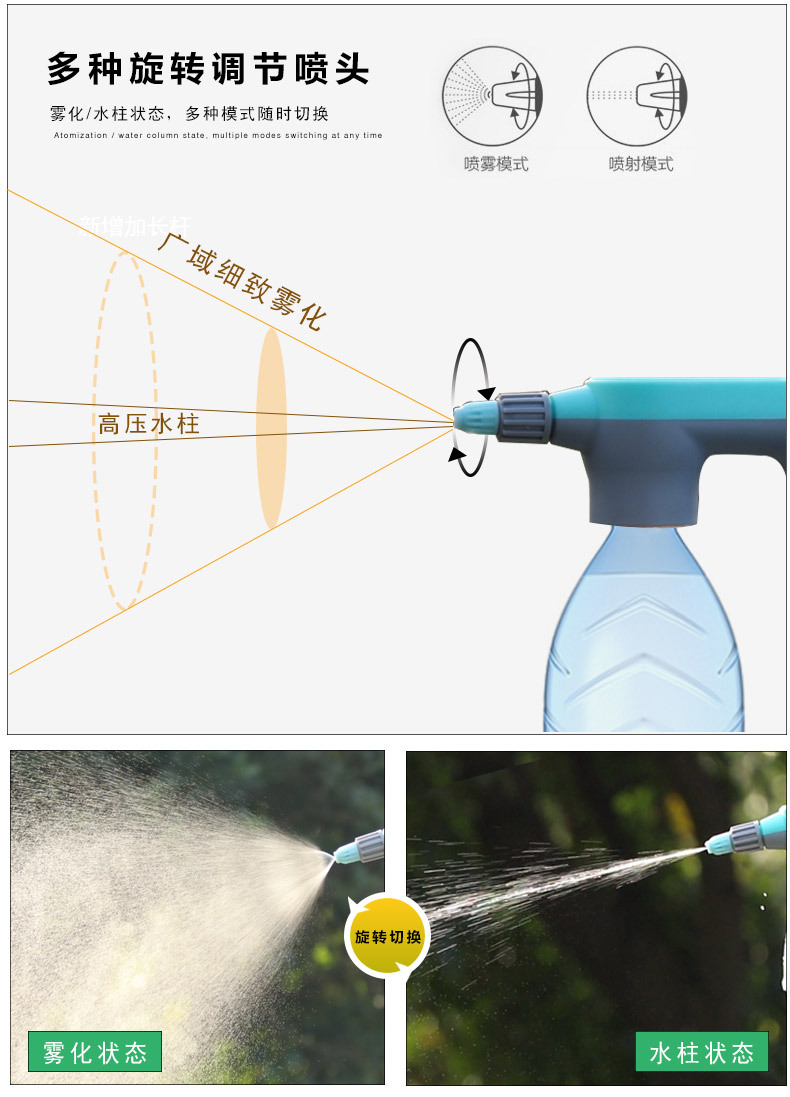 Boquilla neumática eléctrica boquilla de botella de plástico Flor de riego de lavado de coches se puede combinar con tubería de agua hervidor cuerpo regadera Venta directa de fábrica