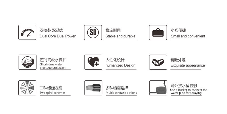 | Especificaciones | Boquilla eléctrica multifuncional rosa,Varilla de alargador de boquilla eléctrica multifuncional rosa,Varilla universal de boquilla eléctrica multifuncional rosa,Varilla de alargación de regadera eléctrica multifuncional rosa (con cuerpo),Varilla universal de regadera eléctrica multifuncional rosa (con cuerpo),Tubo de agua de 3M de la boquilla eléctrica multifuncional rosa,Rosa multifunción boquilla eléctrica 3M tubería de agua cubo plegable,Tubo de agua de 5M con boquilla eléctrica multifuncional rosa,Pink multifunción boquilla eléctrica 5M tubería de agua cubo plegable,Cabeza de pulverización eléctrica multifuncional azul,Varilla de alargamiento de boquilla eléctrica multifuncional azul,Varilla universal de boquilla eléctrica multifuncional azul,Varilla de alargación de regadera eléctrica multifuncional azul (con cuerpo),Varilla universal de regadera eléctrica multifuncional azul (con cuerpo),Boquilla eléctrica multifuncional azul 3M tubería de agua,Boquilla eléctrica multifuncional azul 3M tubería de agua cubo plegable,Cabeza de pulverización eléctrica multifuncional azul 5M tubería de agua,Boquilla eléctrica multifuncional azul 5M tubería de agua cubo plegable,Tubo de succión de 3 m (con bola de filtro),Tubo de succión de 5 m (con bola de filtro),Tubo de succión de 10 m (con bola de filtro),Cubo plegable 11L |