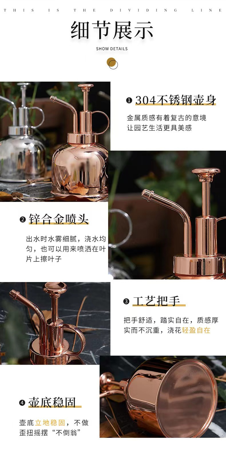 304 de acero inoxidable regadera, Retro oro mini manual suculento riego rociador