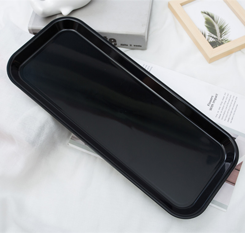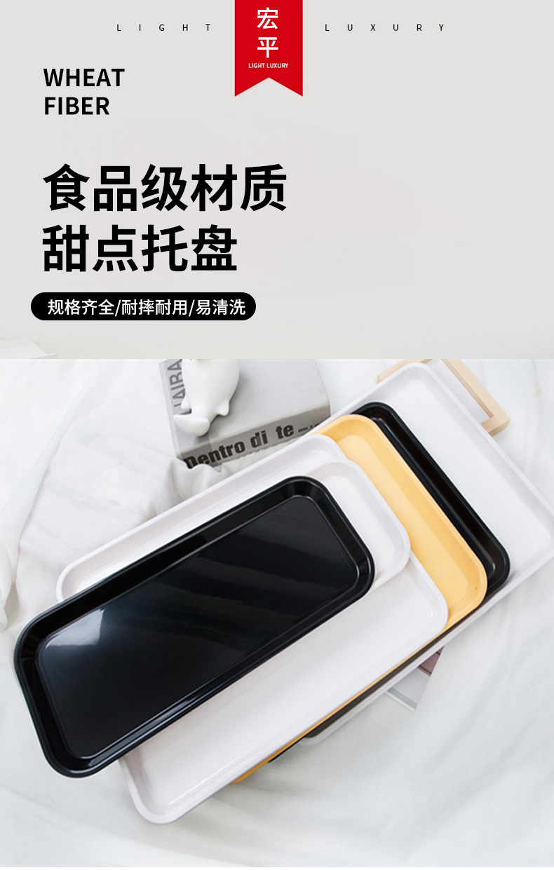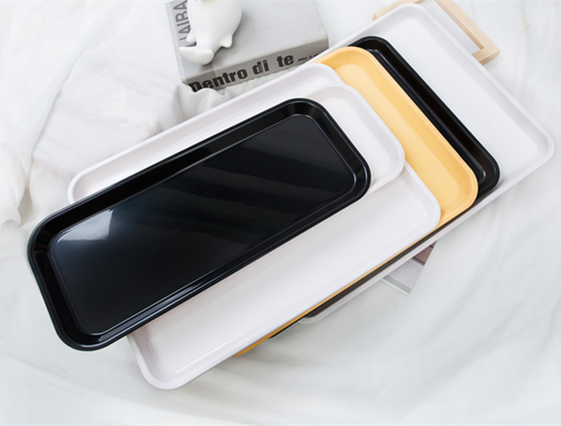 Placa de pastel bandeja de postre occidental torta de mousse rectangular placa de plástico tira de la torta bandeja de exhibición del gabinete
