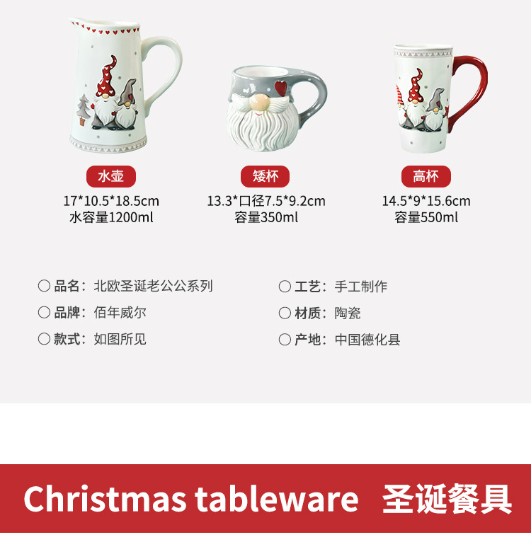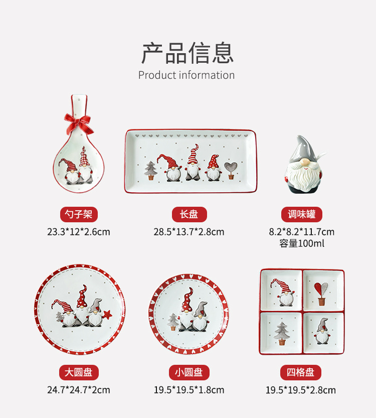 Nordic Santa Claus Tazón plato vajilla traje de alivio ensalada de arroz tazón de cerámica occidental plato plano taza tetera
