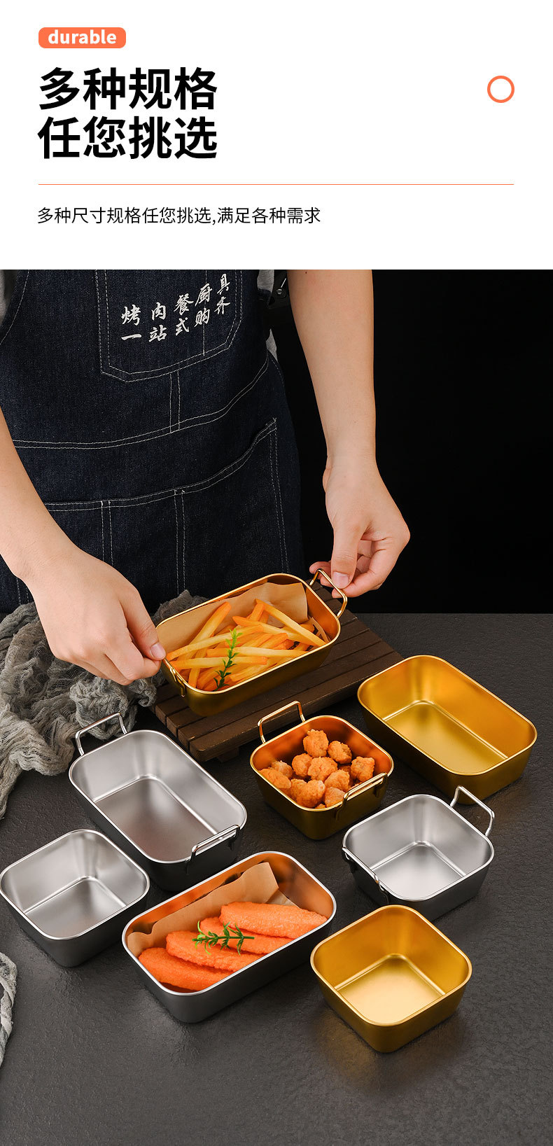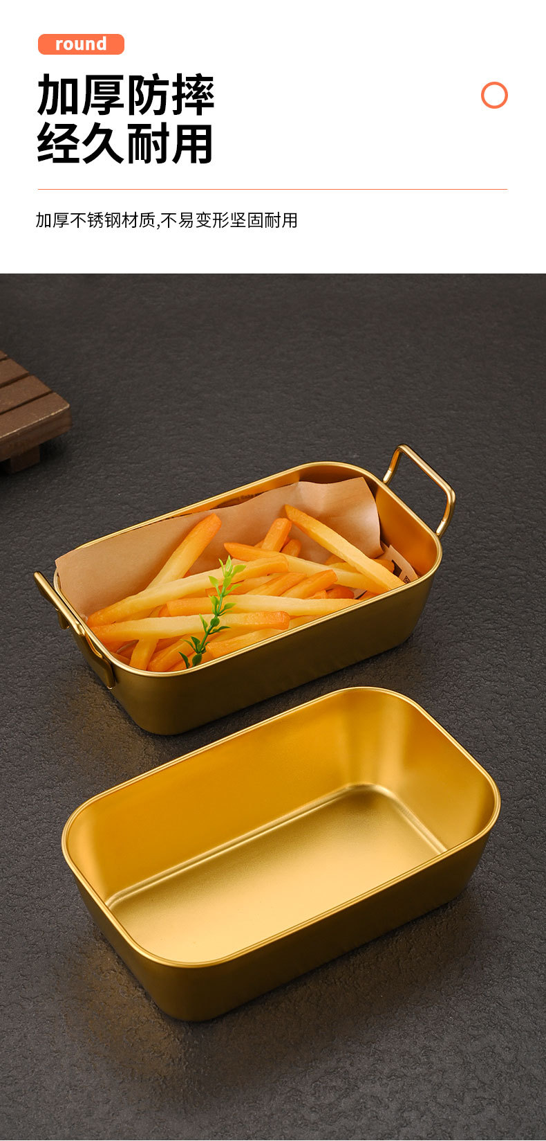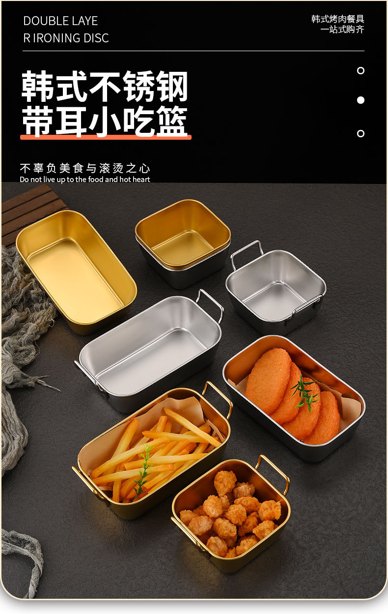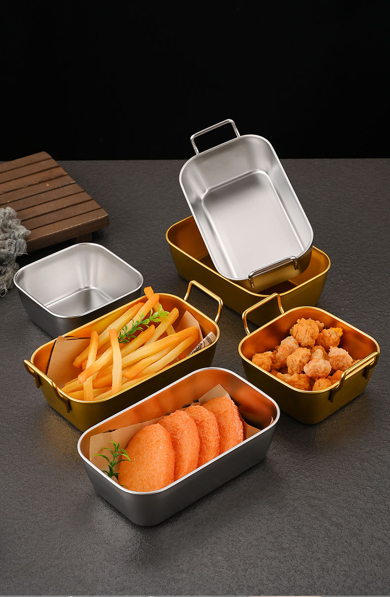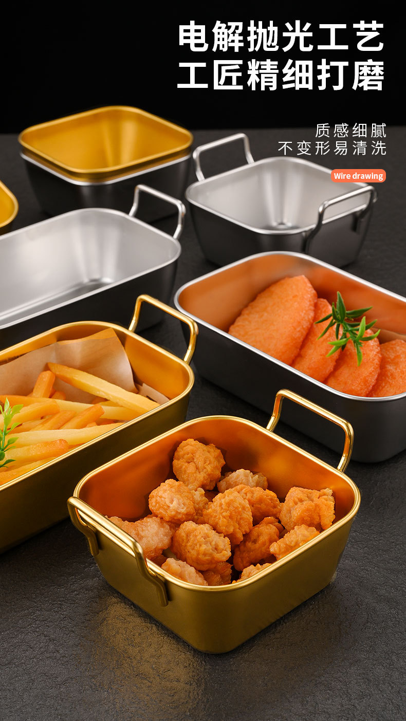 Papas fritas americanas creativas coreanas Pollo frito Cesta de acero inoxidable Comida frita Aperitivos dorados Plato cuadrado al por mayor