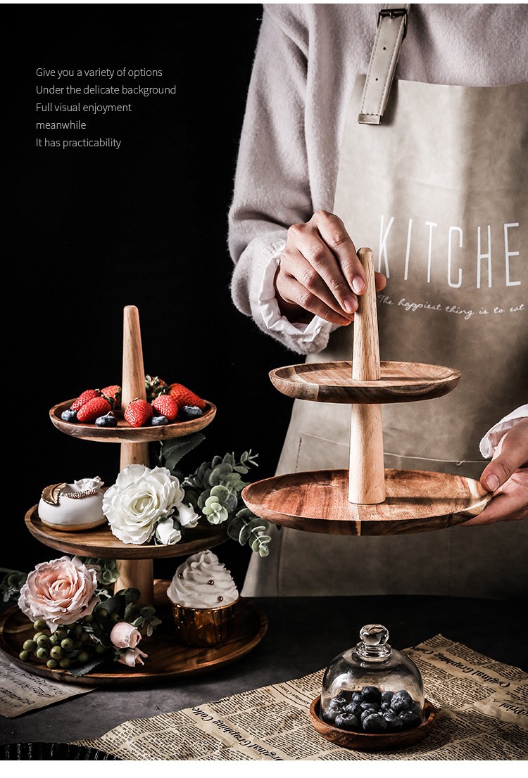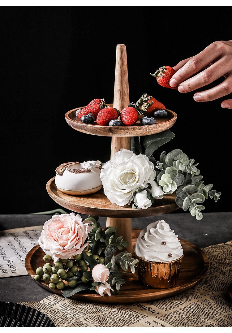 Bandeja de frutas de madera, sala de estar, mesa de café para el hogar, té de la tarde de varios pisos, postre, plato de pastel, postre, estante de exhibición de recepción
