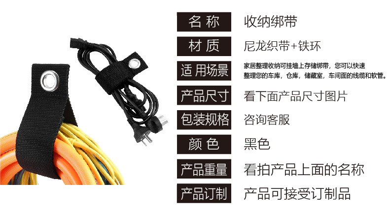 Especial transfronterizo para correa de almacenamiento de servicio pesado garaje en casa práctica correa de almacenamiento correa de acabado de velcro