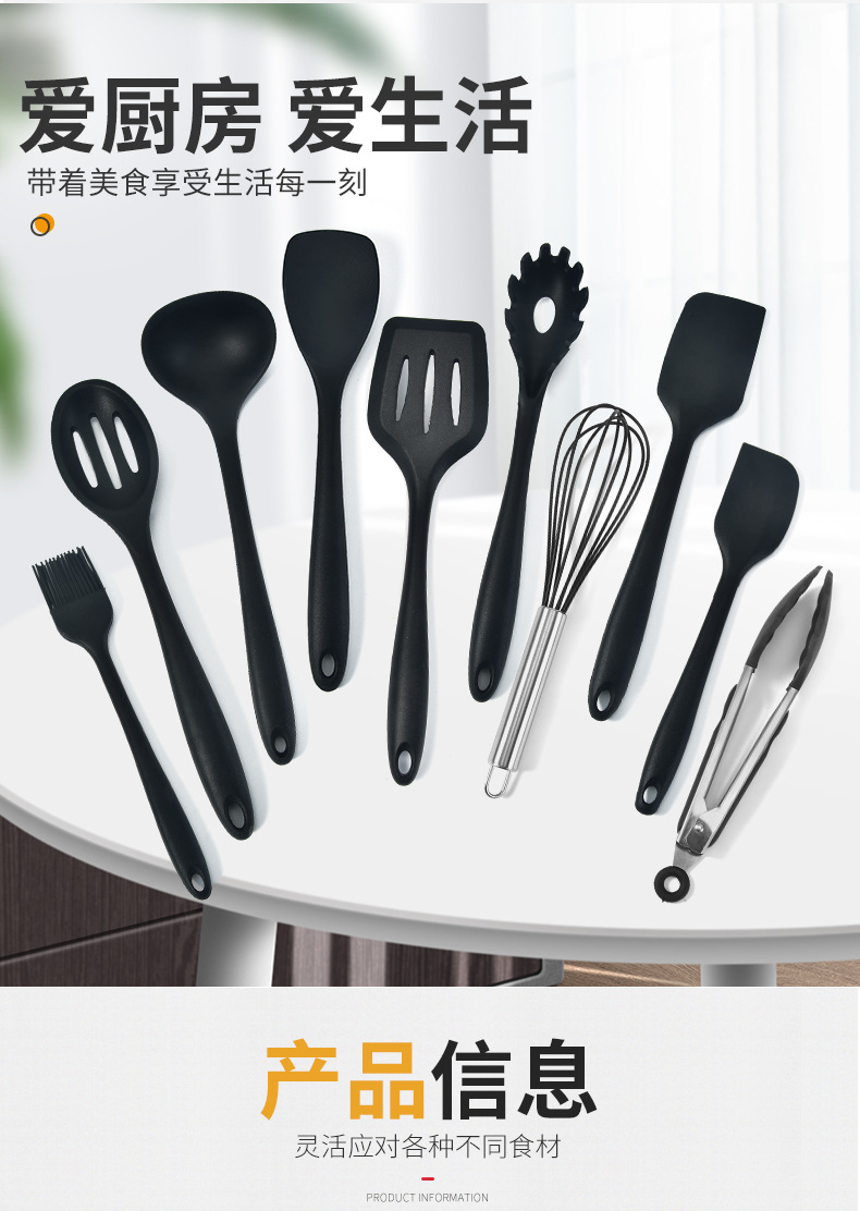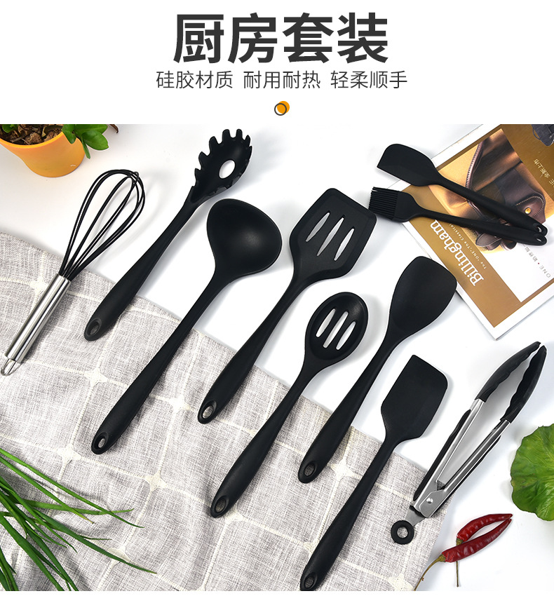 Utensilios de cocina de silicona Juego de 10 piezas todo incluido silicona espátula grande sartén antiadherente espátula de cocina traje de gachas cuchara raspador para hornear