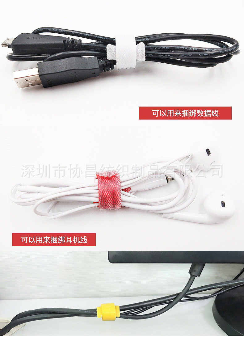 Venta al por mayor cabeza de gato Velcro auricular cable de carga correa de almacenamiento espalda con espalda cable de datos autoadhesivo cinta de velcro
