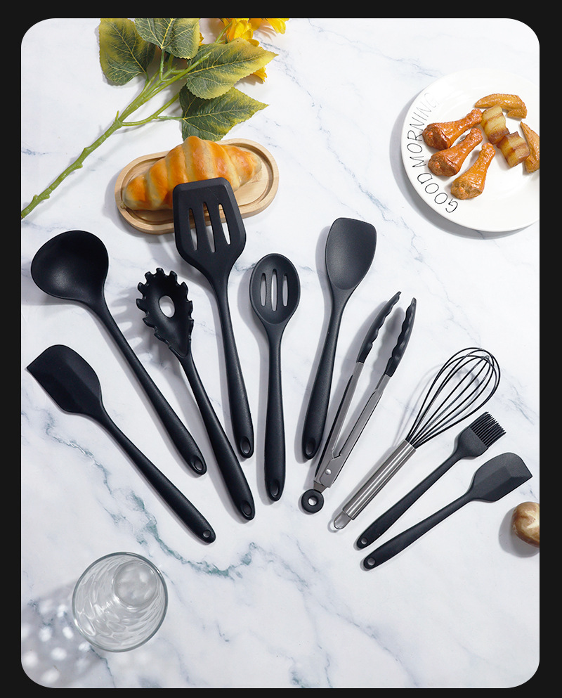 Espátula de silicona cuchara de sopa 10 piezas de grado alimenticio sartén antiadherente espátula de silicona resistente a altas temperaturas traje de cocina de silicona al por mayor