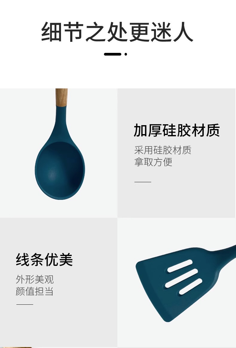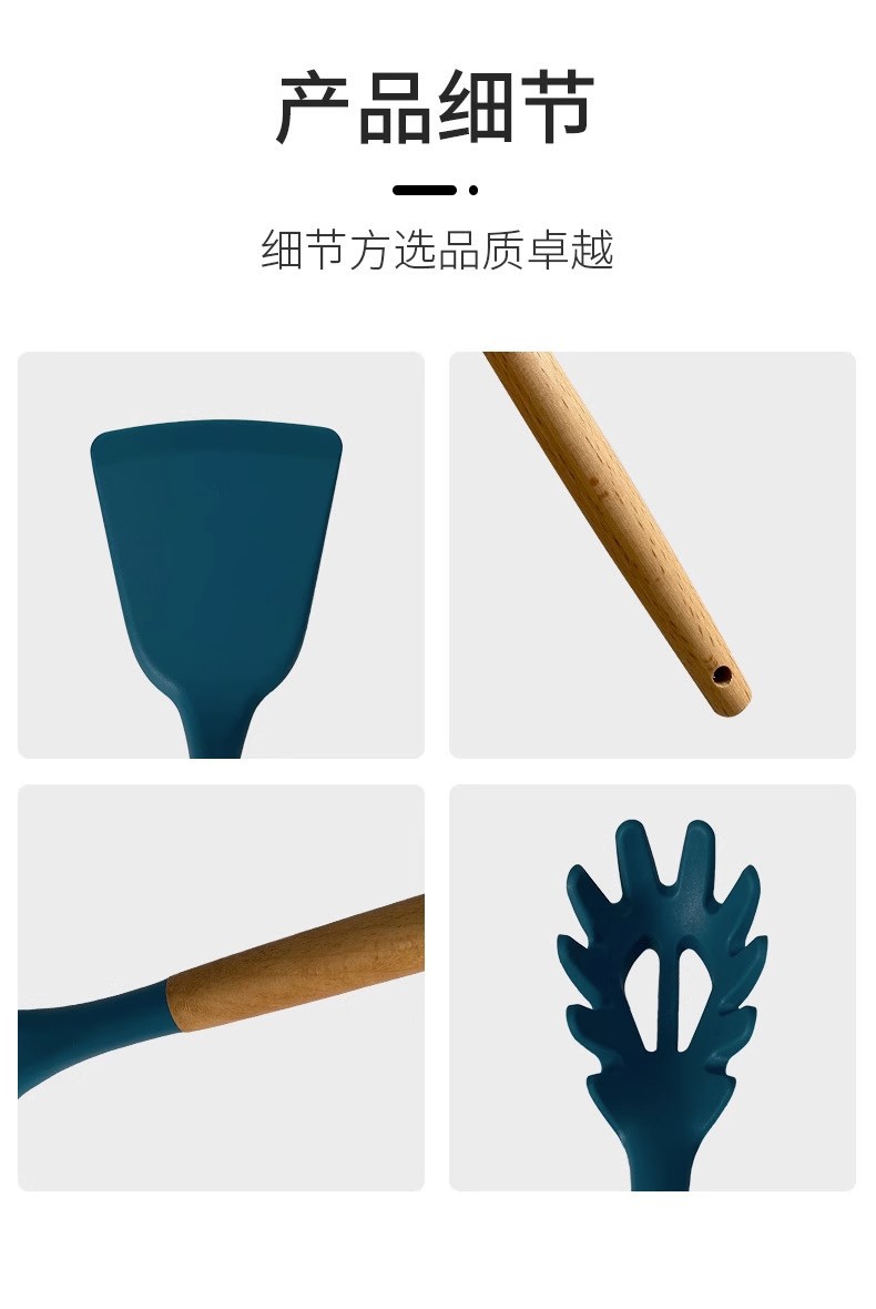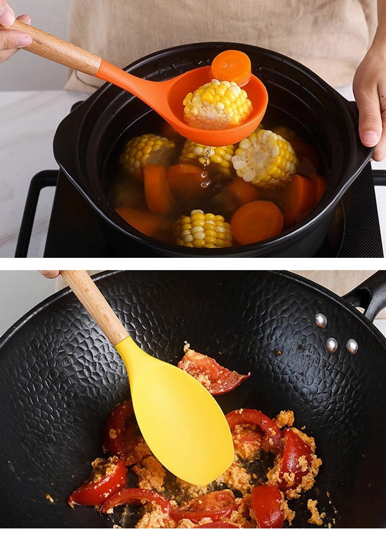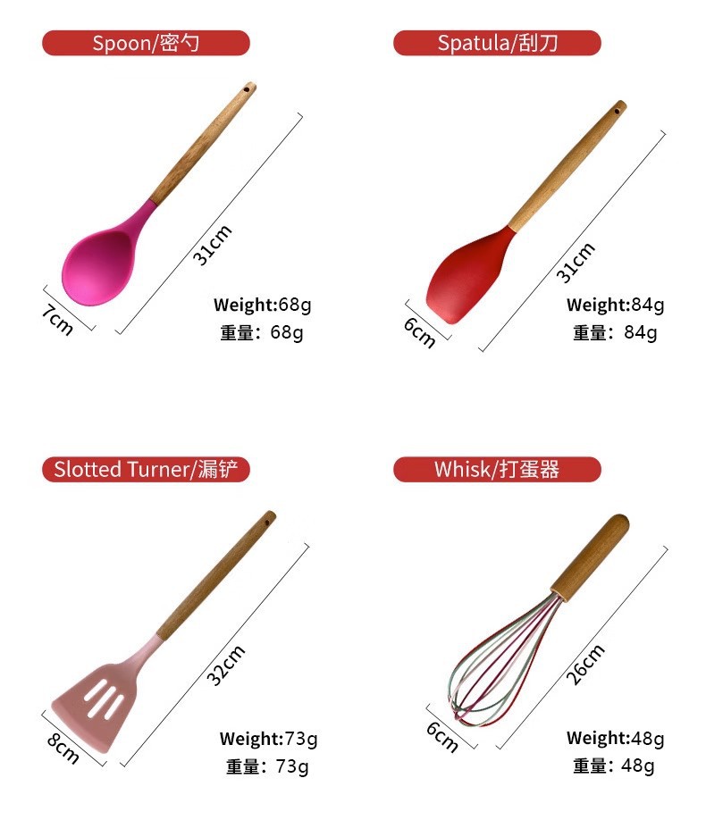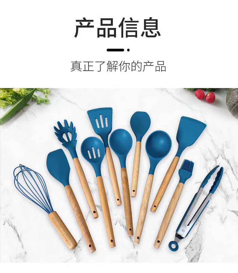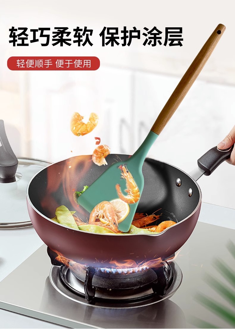 Utensilios de cocina de silicona transfronterizos 12 piezas de cocina sartén antiadherente mango de madera pala de silicona cuchara traje de cocina utensilios de cocina domésticos