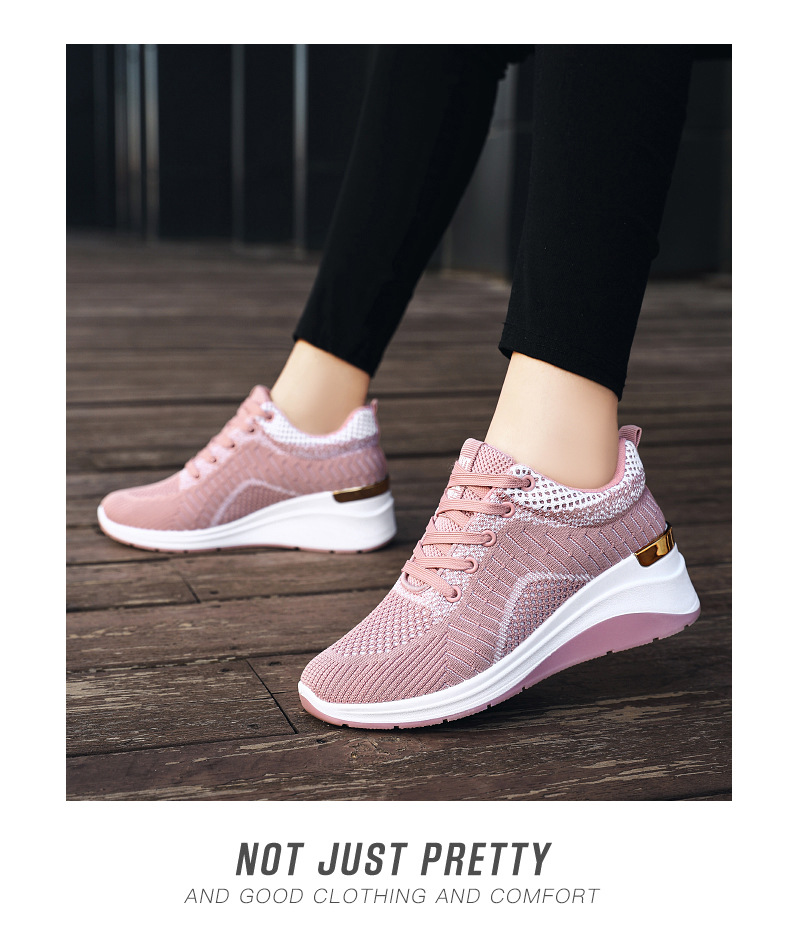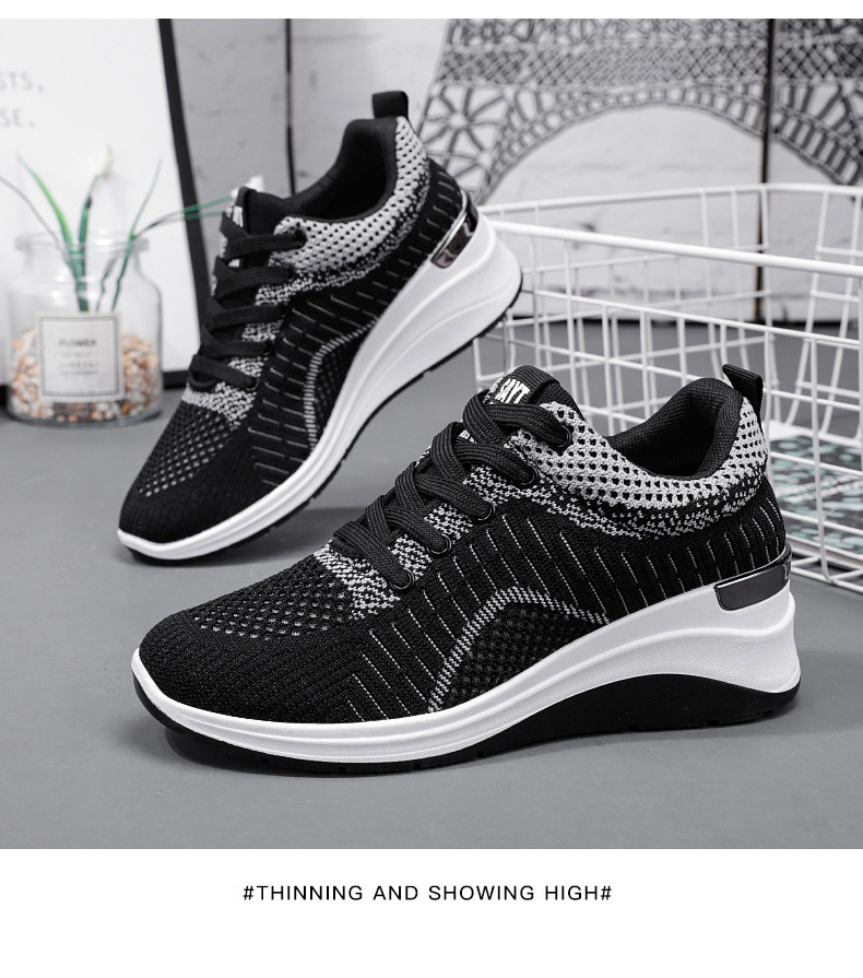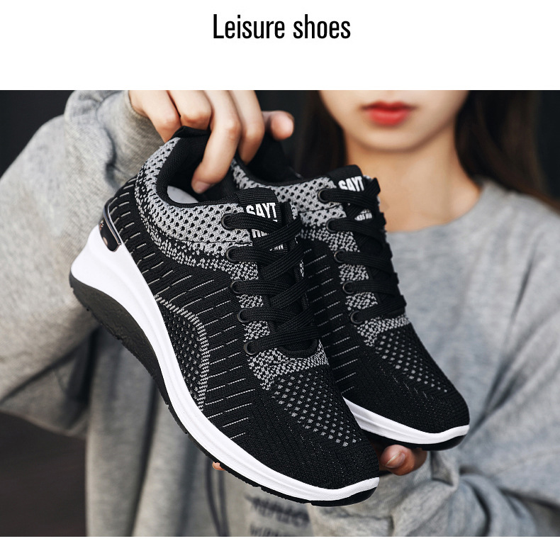 Zapatos casuales de mujer zapatos de mujer transfronterizos universales zapatos de altura de suela gruesa zapatos simples zapatos tejidos poco profundos zapatos de malla transpirables