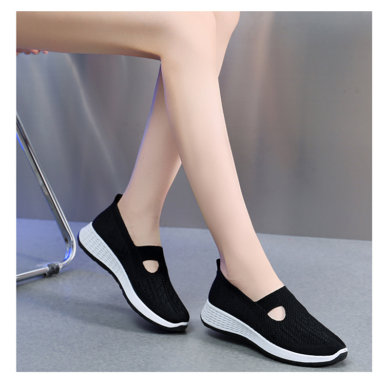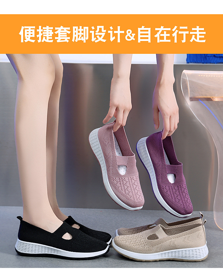 Zapatos de tela viejos de Beijing zapatos de mujer de verano transpirable zapatos de mamá ligeros 2023 nueva zapatilla de deporte volando superficie de malla tejida entrega de una sola pieza