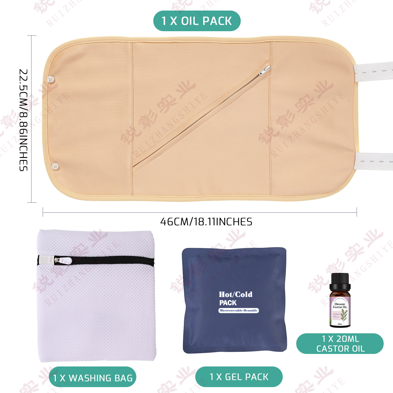 Bolsa de aceite de ricino Amazon Paquete de aceite de ricino bolsa de cuidado reutilizable a prueba de fugas de aceite de ricino bolsa de cintura