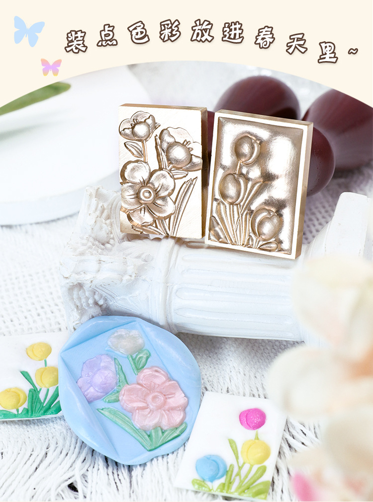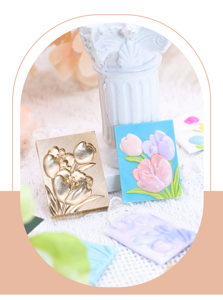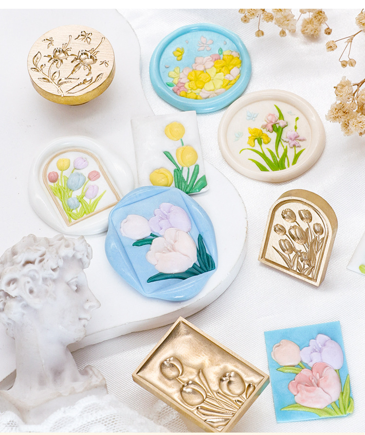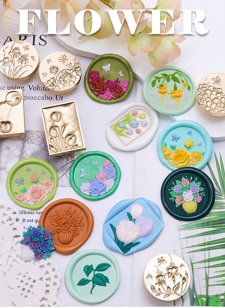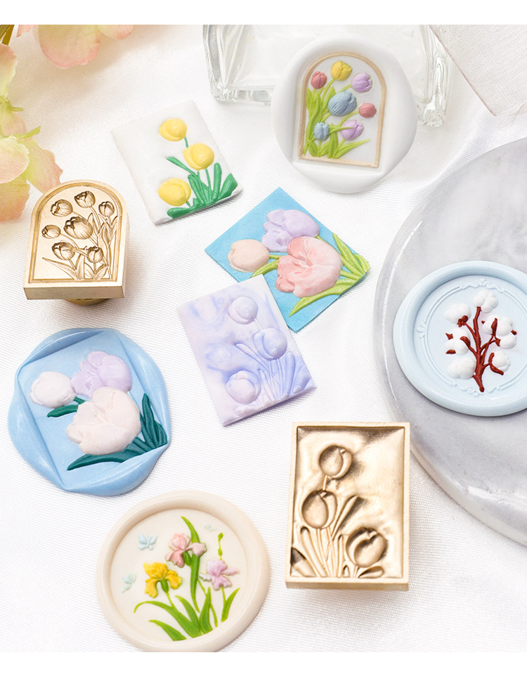 Sello de pintura de fuego serie de plantas tulipán rosa artística fuego pintura sello creativo cera regalo