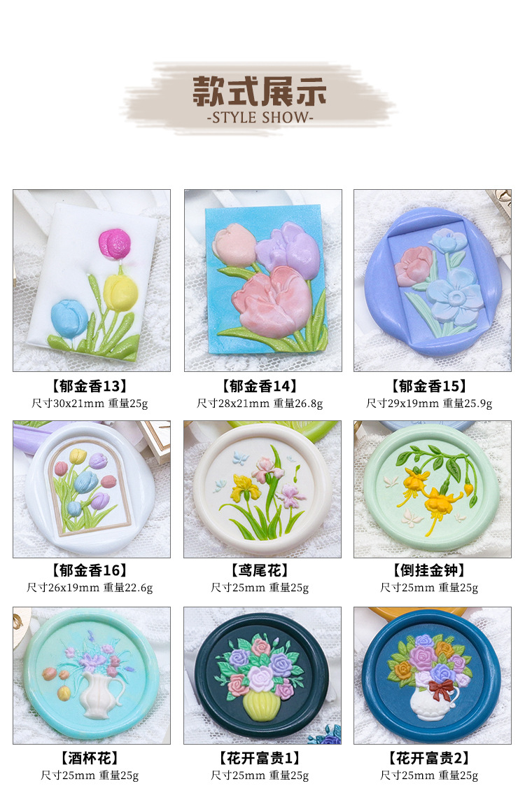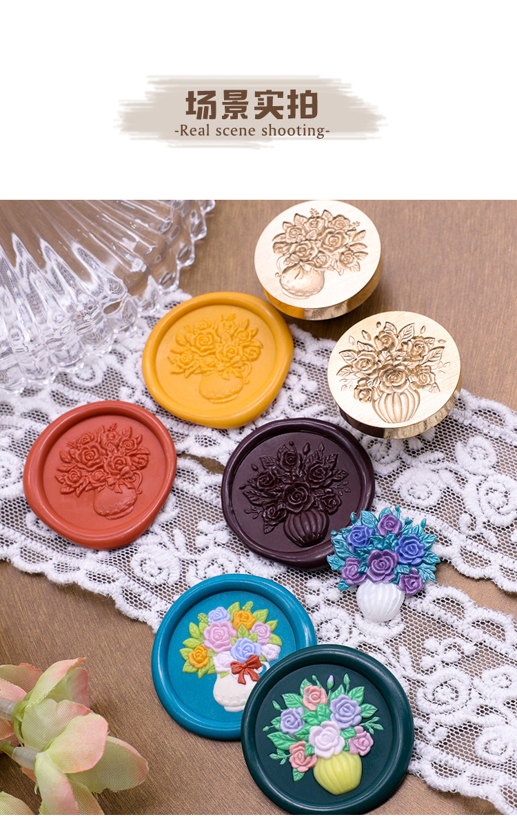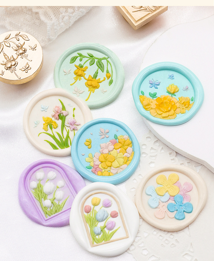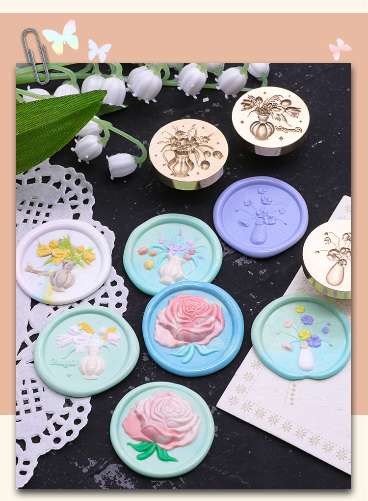 Sello de pintura de fuego serie de plantas tulipán rosa artística fuego pintura sello creativo cera regalo