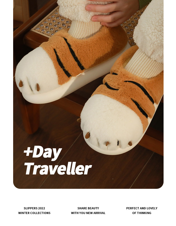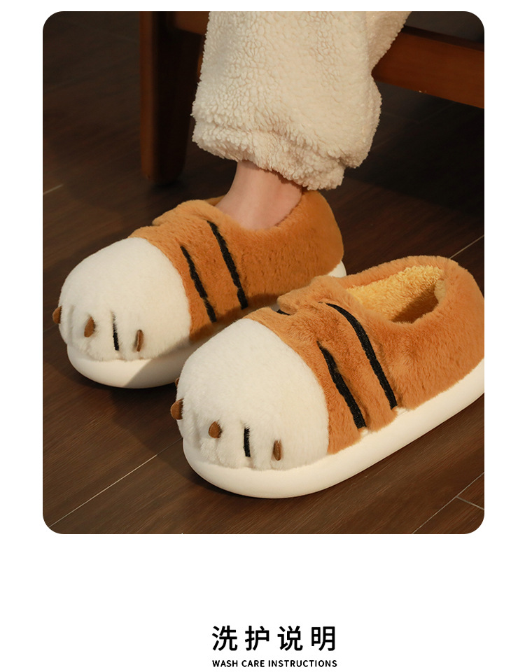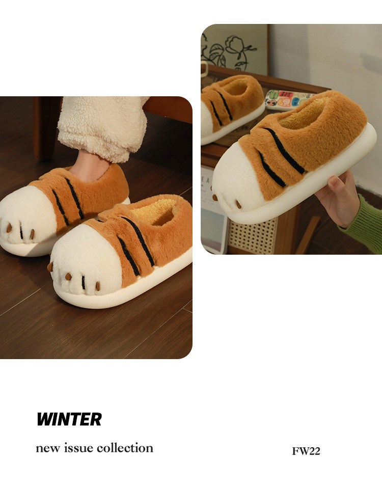 Tigre garra algodón zapatillas de invierno las mujeres bolsa talón lindo hogar interior inferior grueso felpa confinamiento pareja algodón zapatos desgaste exterior los hombres