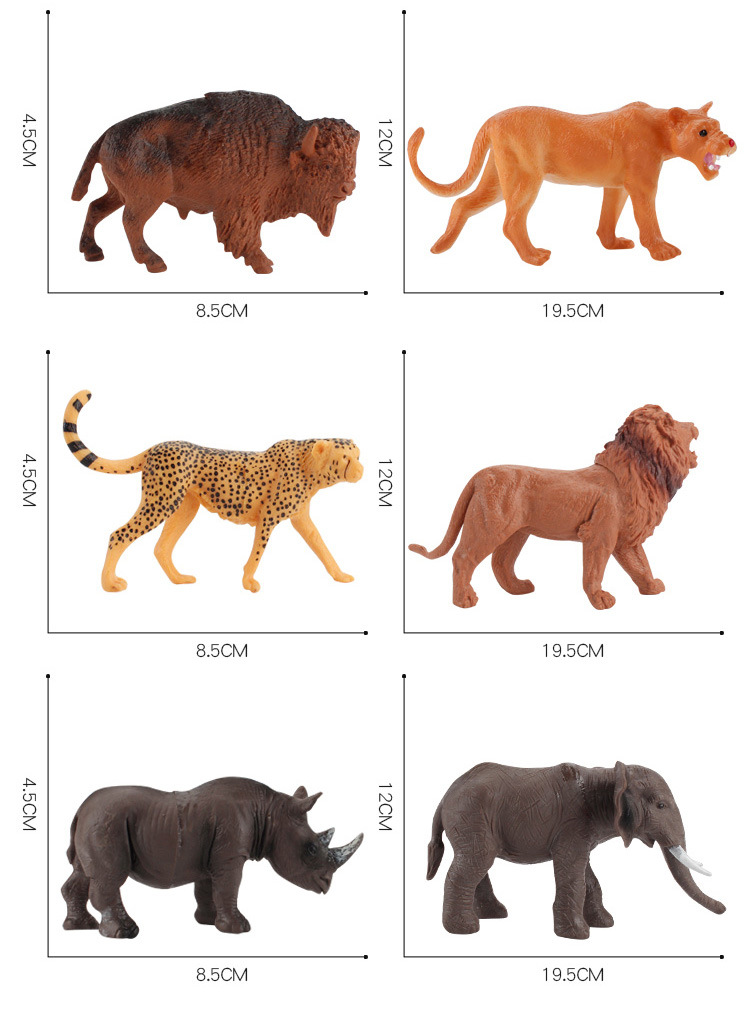 Niños educativos modelo animal cognitivo adornos hipopótamo León cebra rinoceronte mamíferos salvajes conjunto de 12 piezas
